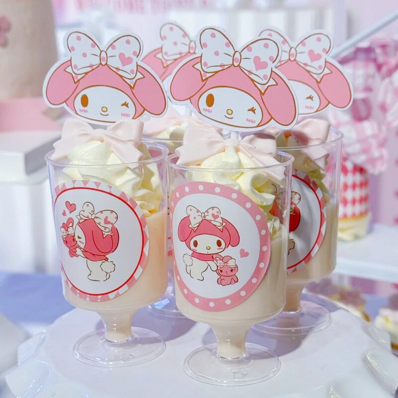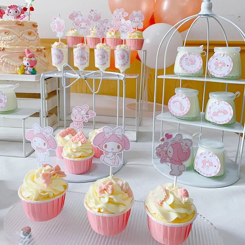 可爱女孩三丽鸥美乐蒂生日蛋糕摆件烘焙纸杯插件慕斯杯贴纸推推乐