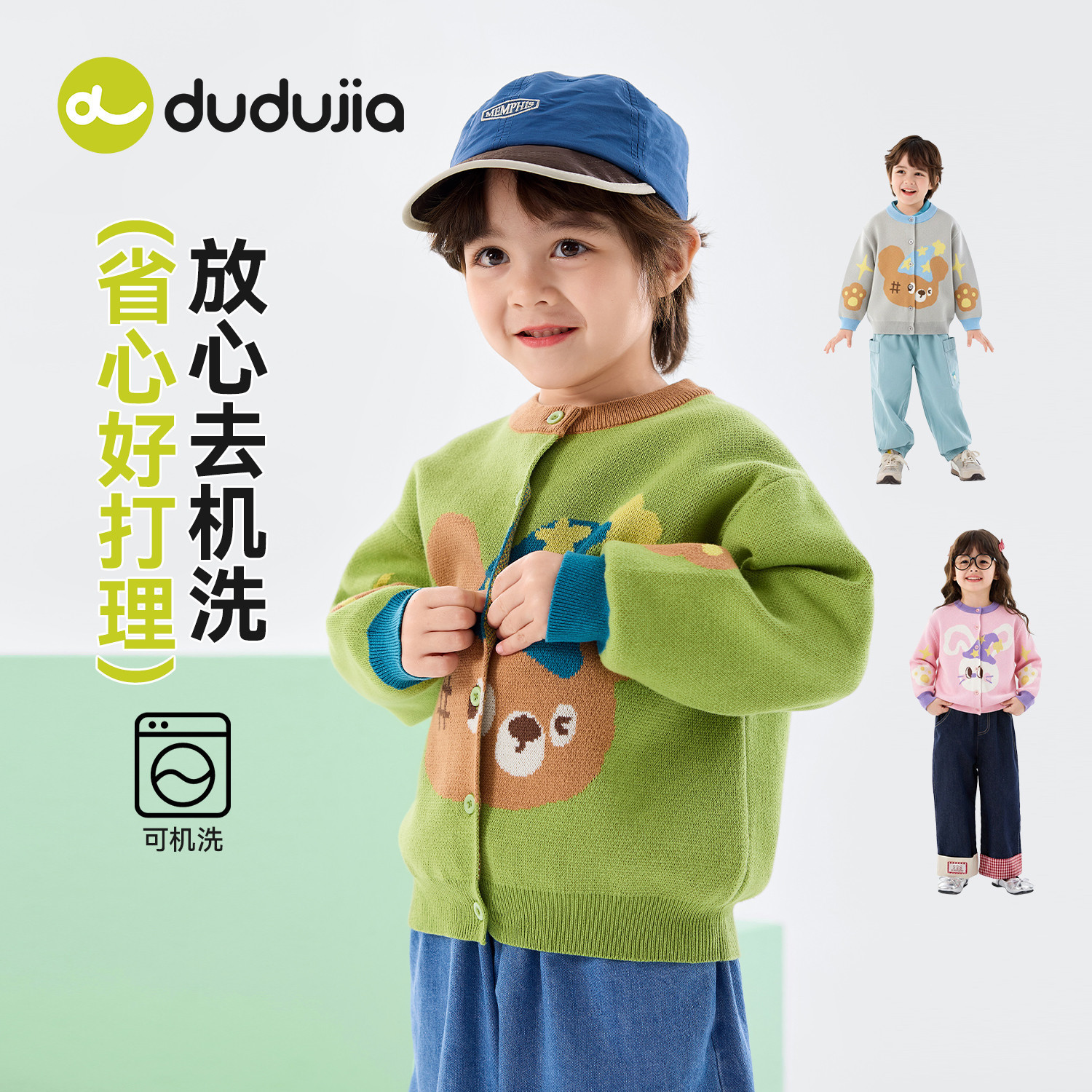 嘟嘟家男童毛衣红色儿童针织开衫女童春装上衣外套宝宝童装新衣服