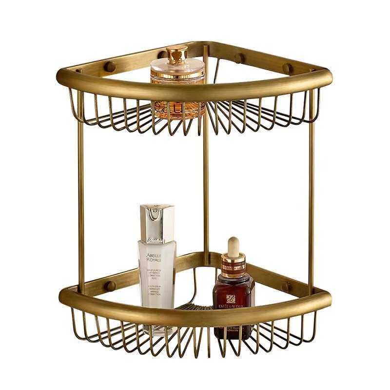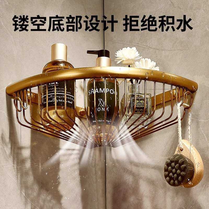 仿古浴室置物架酒店别墅全铜壁挂收纳转角架卫生间淋浴房三角网篮