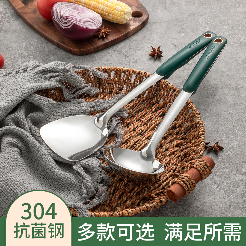 国风304不锈钢锅铲家用厨房炒勺汤勺厨具套装炒菜加厚铁铲子大勺