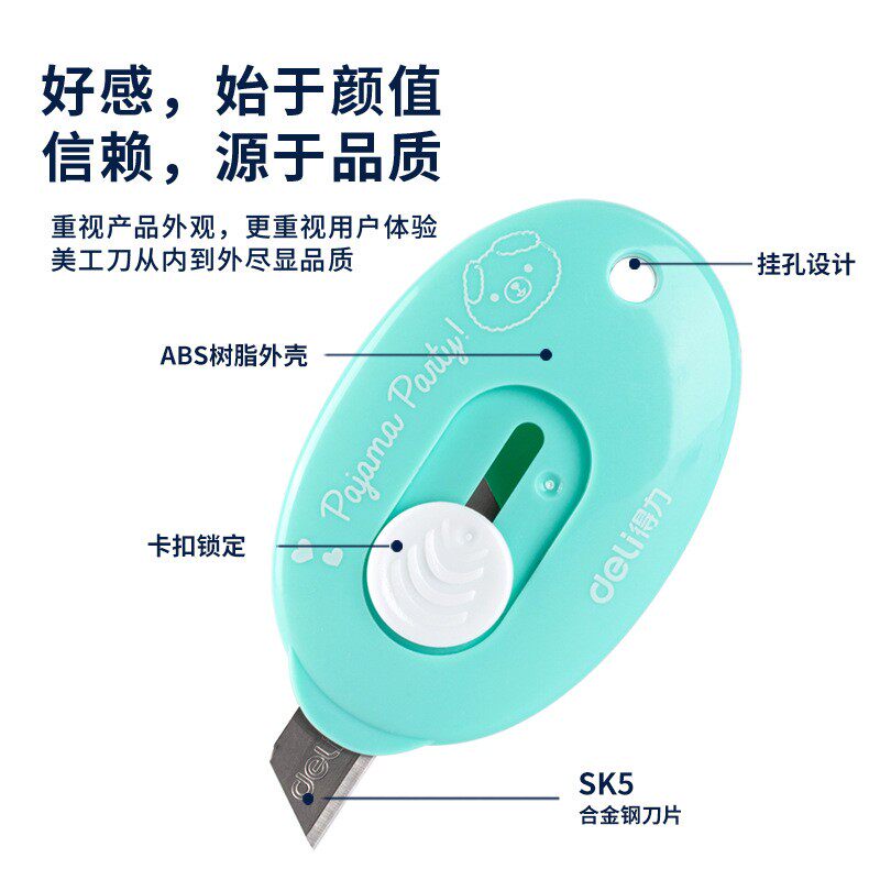 得力2087迷你刀子自动退回美工刀小刀易携带切割信封拆快递袋