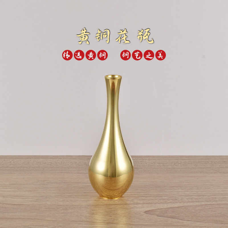 纯黄铜素面光身净水瓶小插花瓶佛前供花瓶供奉观音用品供具