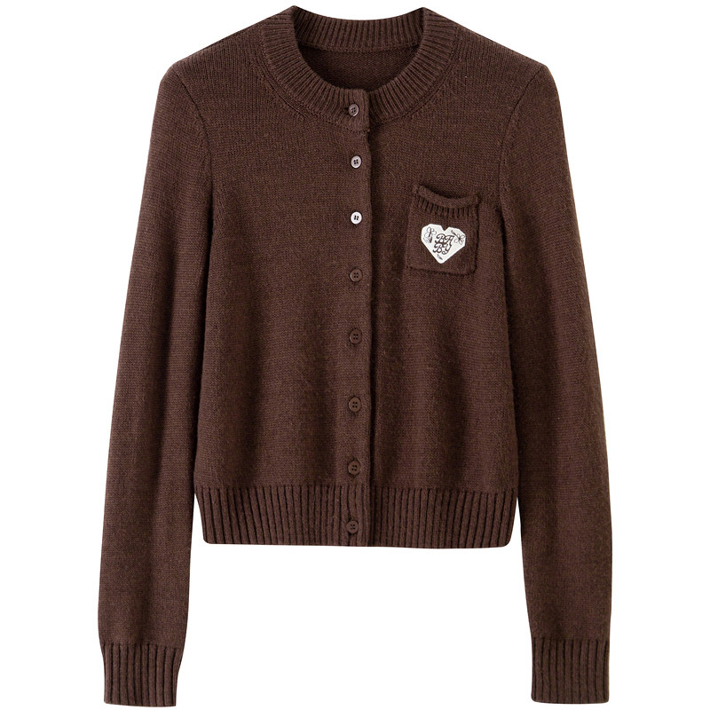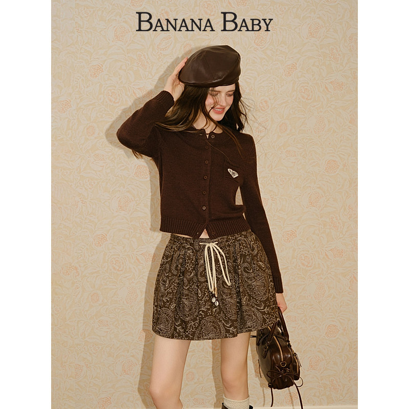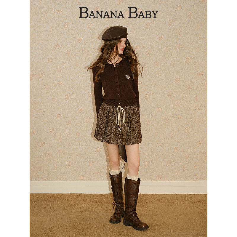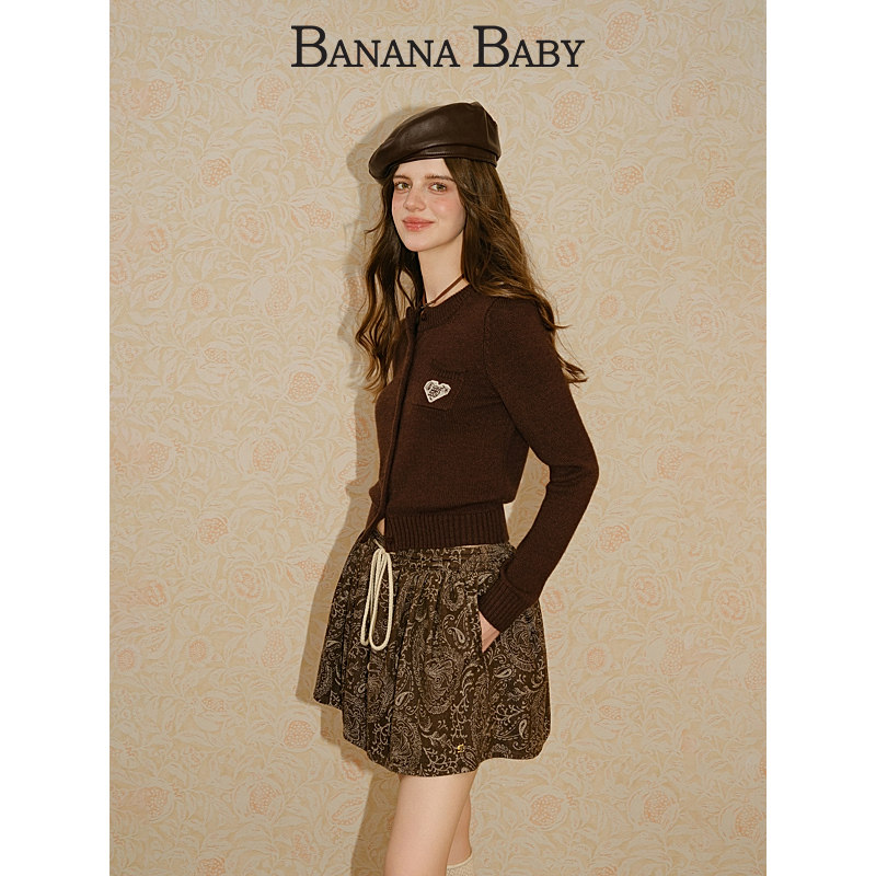 【绵羊毛】BANANA BABY2025年冬新款韩系复古刺绣针织开衫女显瘦