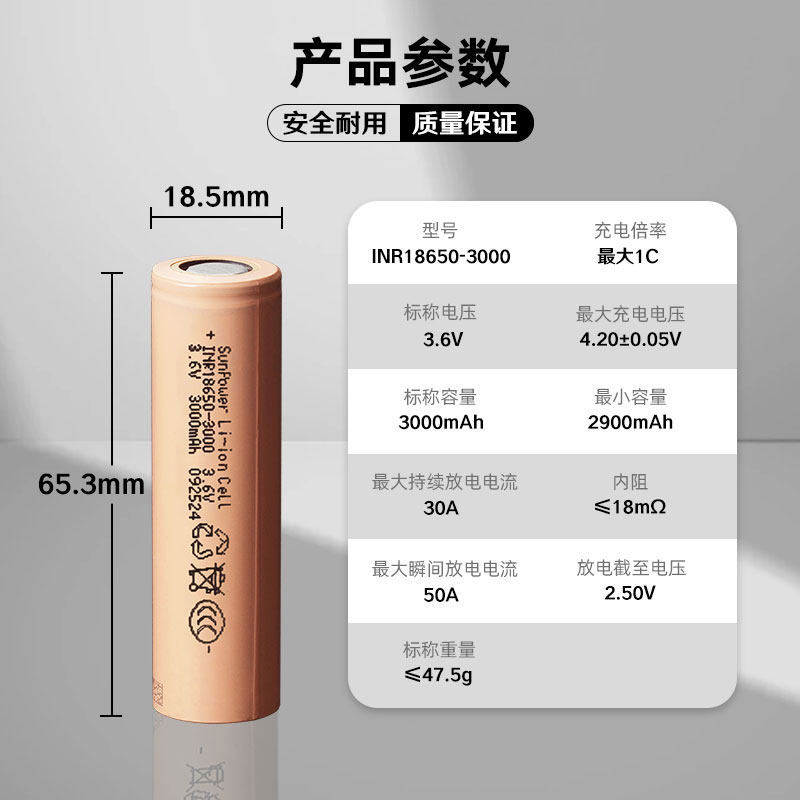 高容量18650动力锂电池3400高容量电动工具手电筒音箱充电电池3.7