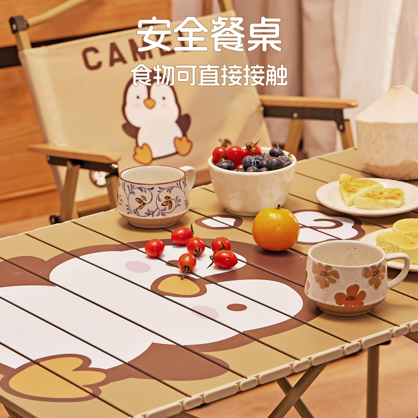 骆驼抱抱鹅桌椅户外折叠桌便携野餐桌子露营装备野营企鹅蛋卷桌