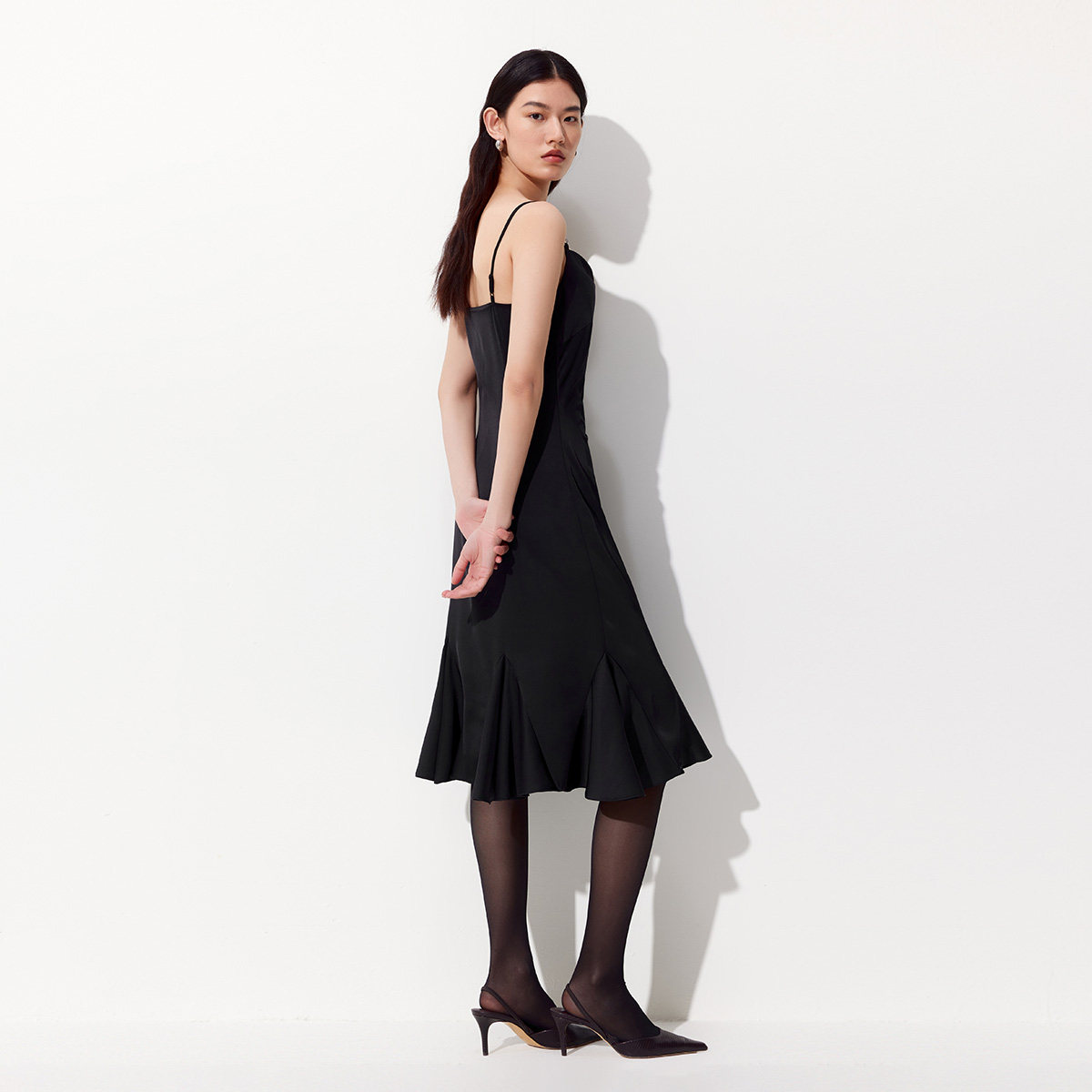 半练带胸垫连衣裙背心裙子黑色长裙吊带裙秋季流行新款打底小黑裙