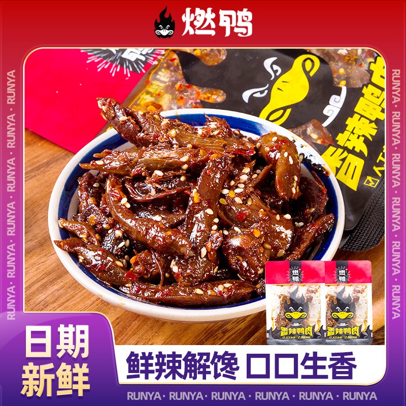燃鸭香辣碎碎鸭湖南特产手撕鸭排酱板鸭开袋即食鸭肉解馋零食小吃