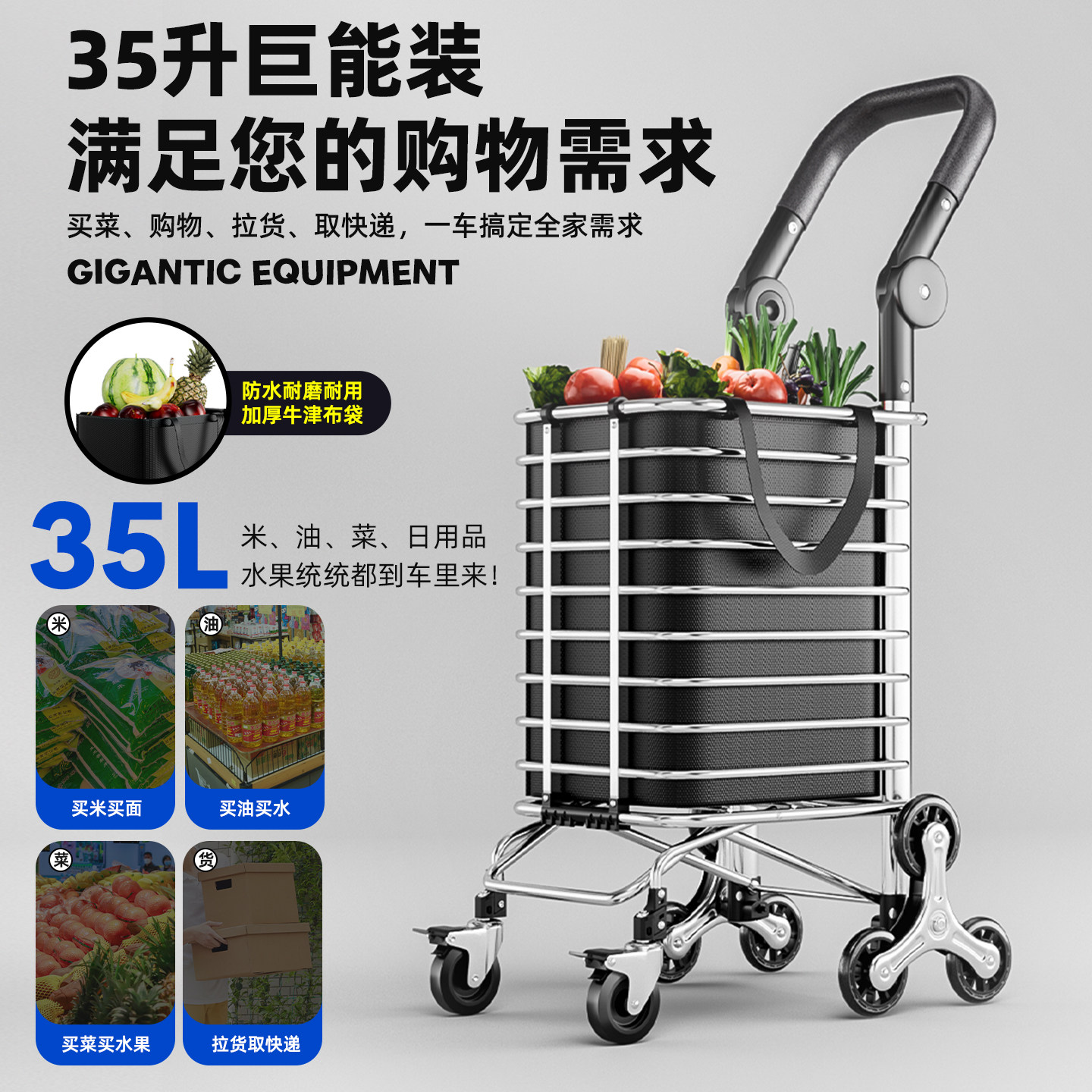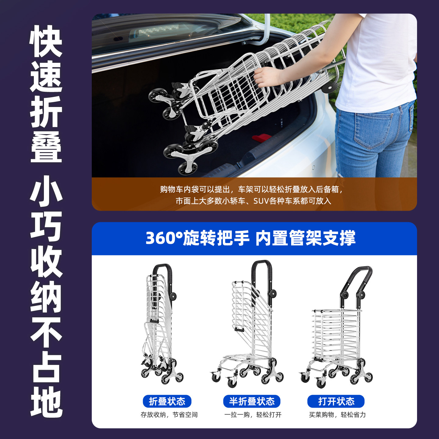 购物车买菜小拉车可折叠手拉车老人铝合金家用轻便爬楼拉杆车推车
