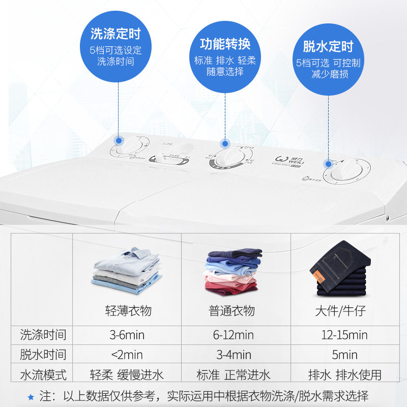 威力9公斤半自动双缸洗衣机家用大容量双桶迷你旋钮式XPB90-9082S