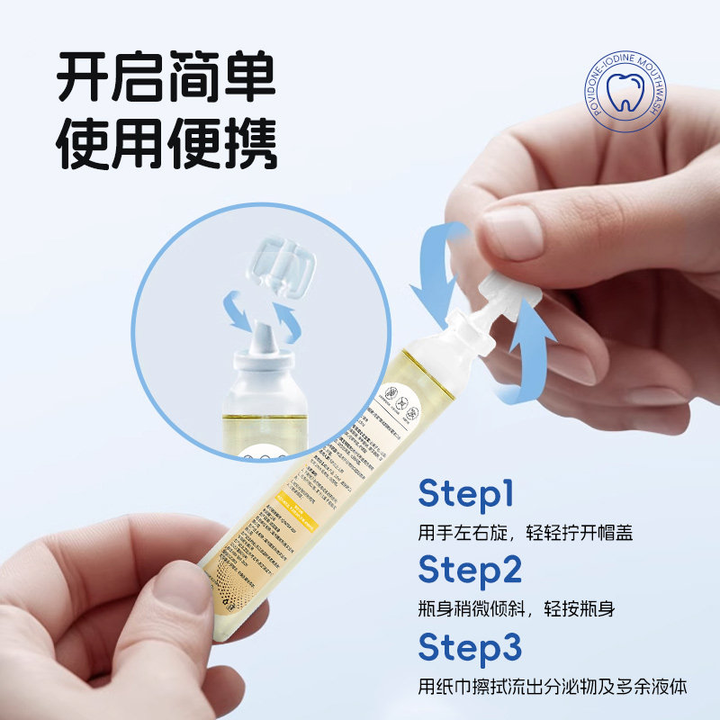 聚维酮碘抑菌漱口水便携式一次性碘伏漱口水温和清新口气男女生