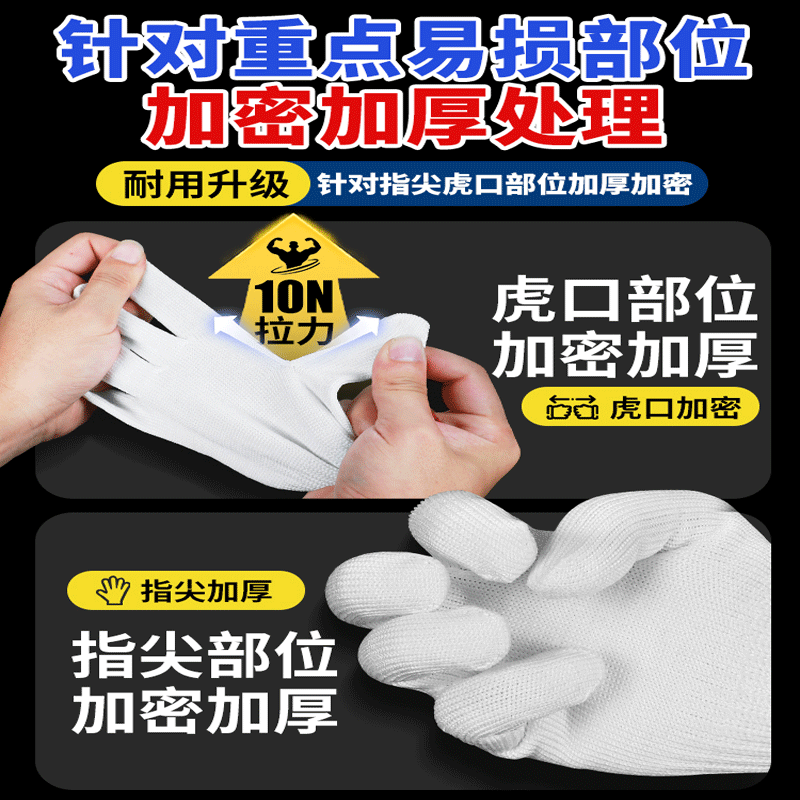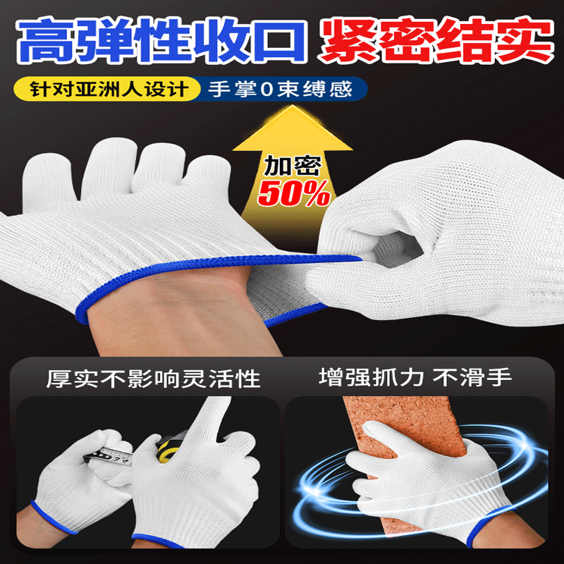 手套男工地干活线防滑尼龙加厚棉纱劳动工人手套劳保耐磨工作干活