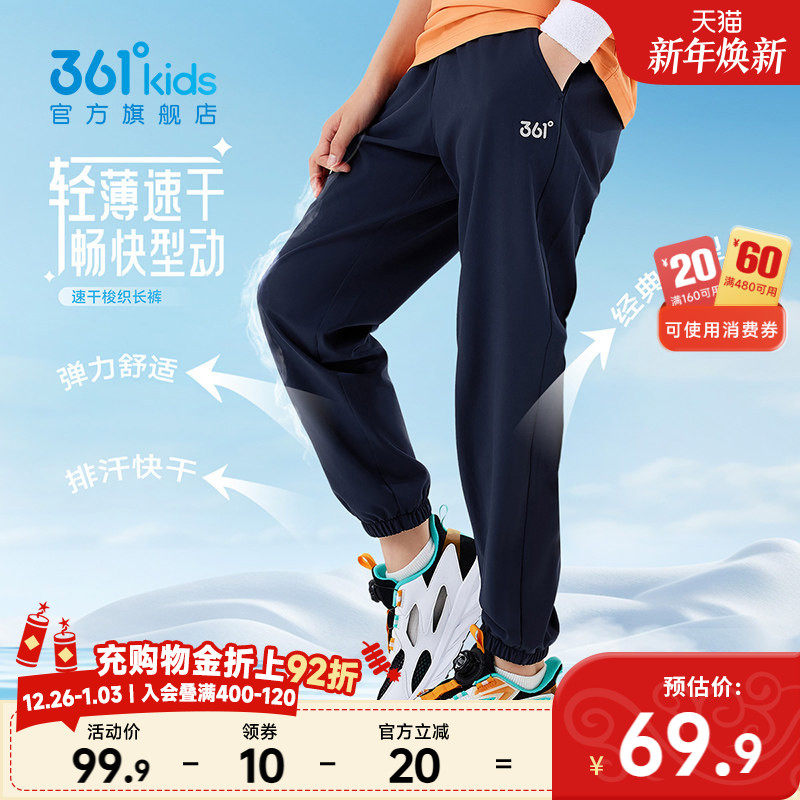 361度童装速干男女童梭织长裤2025夏季新款中大童儿童冰感运动裤