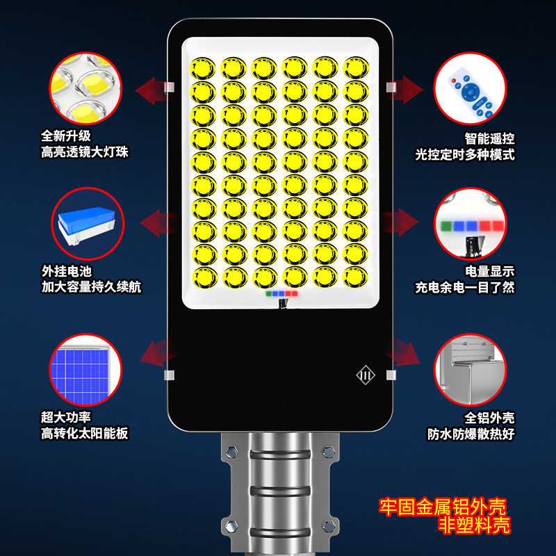 新款太阳能户外路灯外置大电池超亮大功率灯珠农村强光LED照明灯