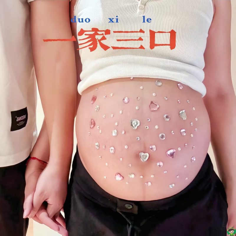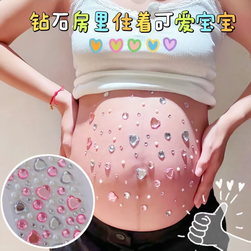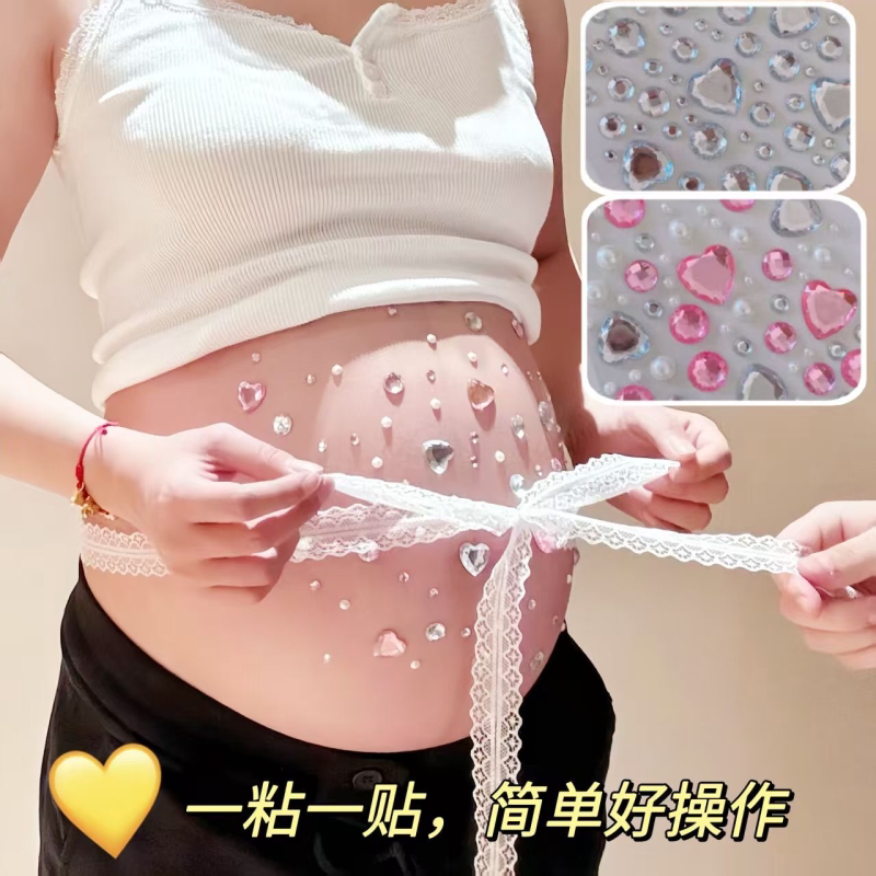 孕妇肚皮钻石居家照道具拍珍珠钻in贴s风造型孕肚水写真照贴纸.