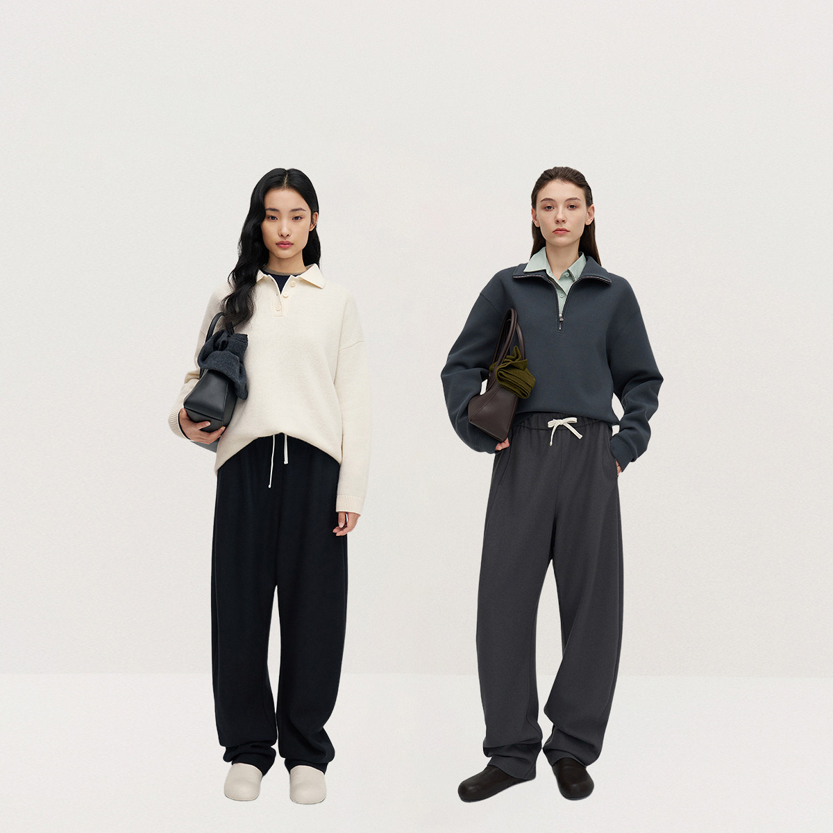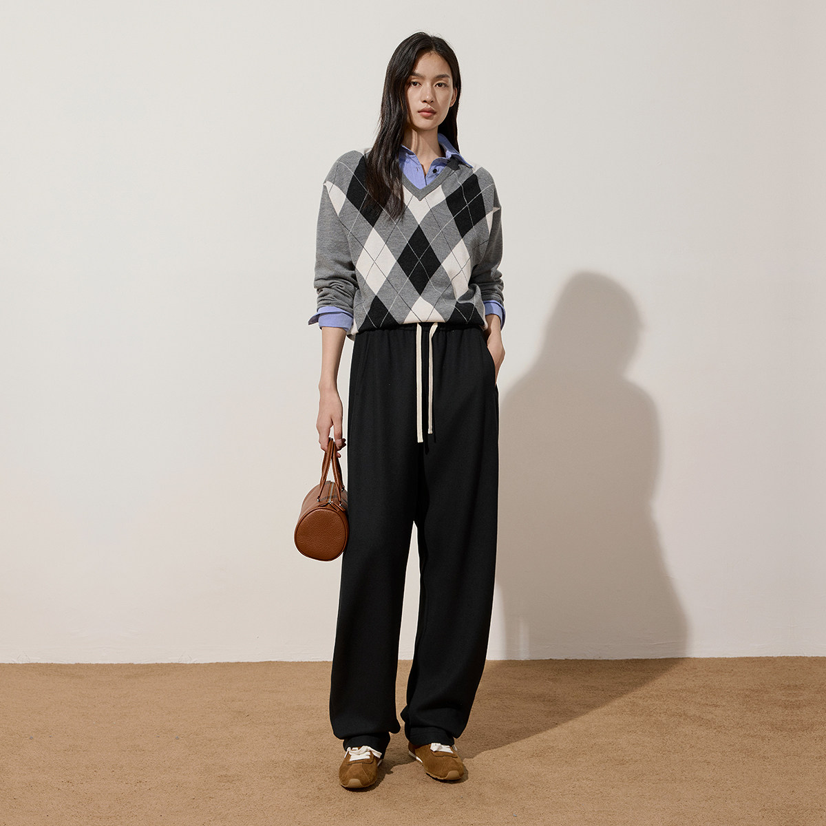【季末折扣】欧时力含羊毛针织呢弯刀裤卫裤宽松休闲流行秋冬新款