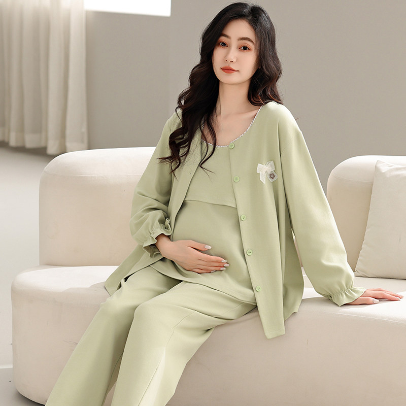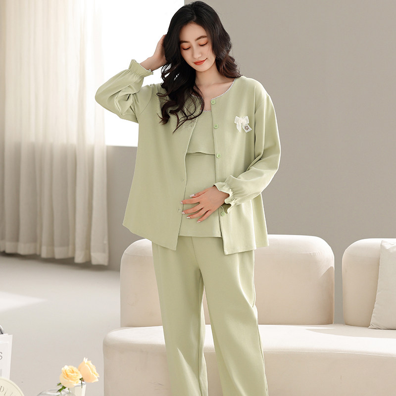 秋冬季空气棉月子服三件套春秋纯棉产后孕妇睡衣哺乳产妇12月份11