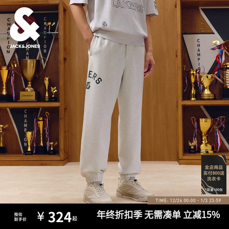 杰克琼斯NBA联名男装休闲裤秋季新款植绒胶印刺绣贴布宽松束脚裤