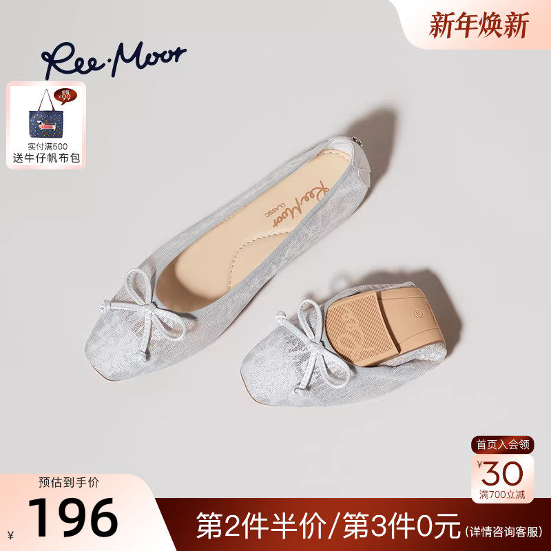 REEMOOR睿慕2025秋新款平底蕾丝浅口单鞋舒适蝴蝶结船鞋一脚蹬女