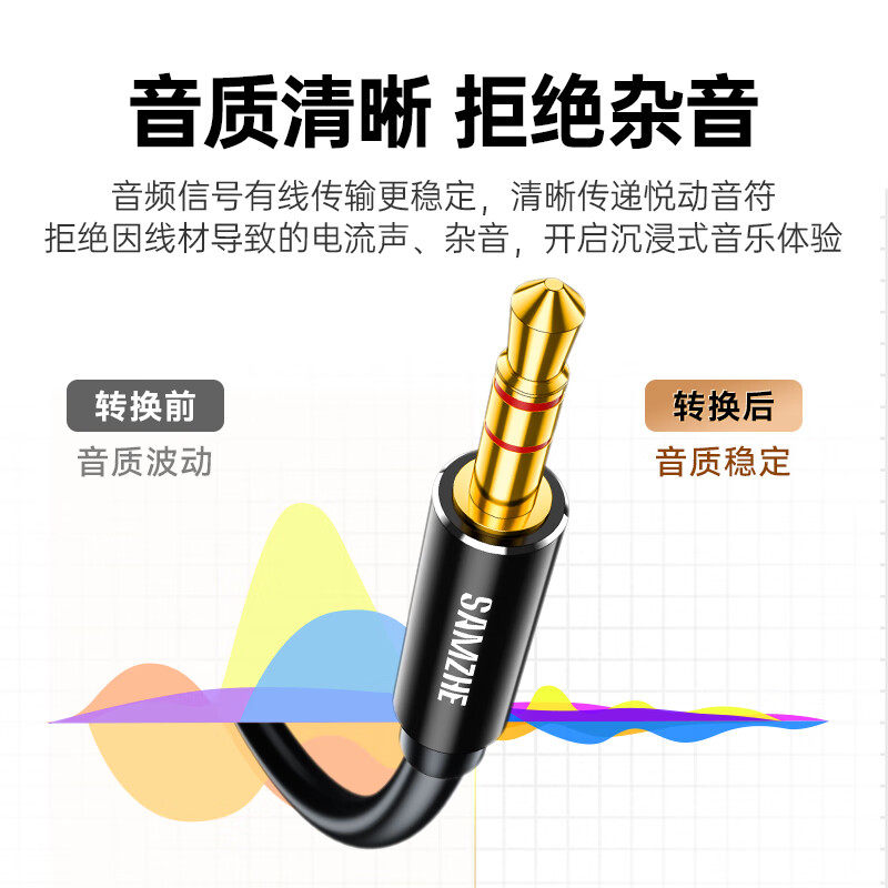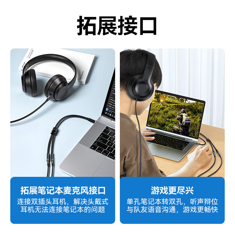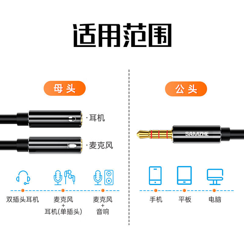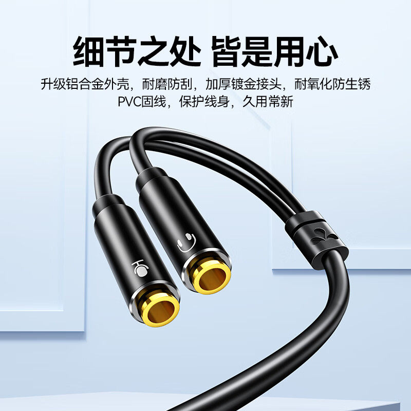 山泽耳机转接头一分二音频分线电脑耳机转换器二合一麦克风转换线