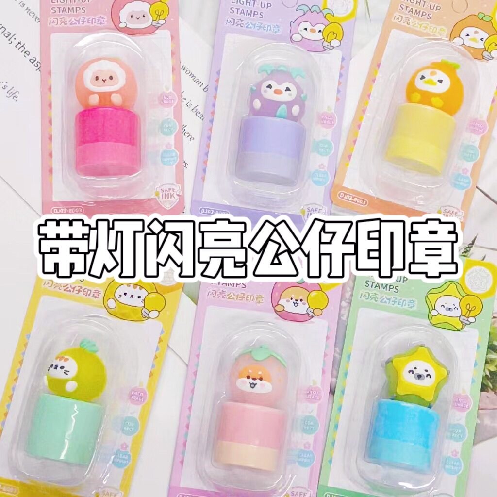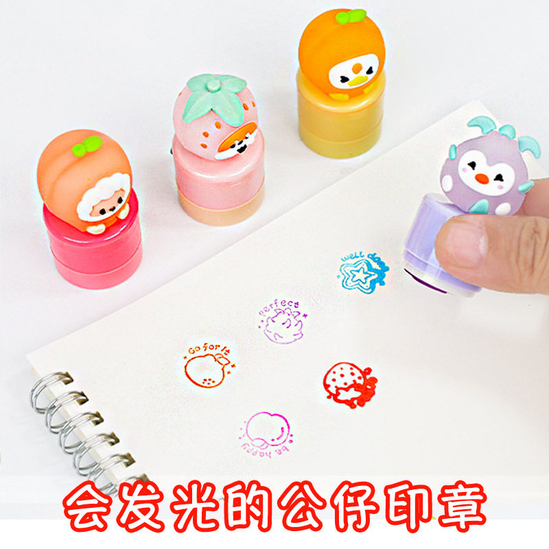 爆款发光公仔印章isn高颜值卡通可爱萌奖励儿童水果图案盖章玩具6