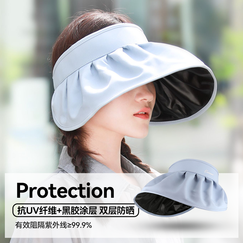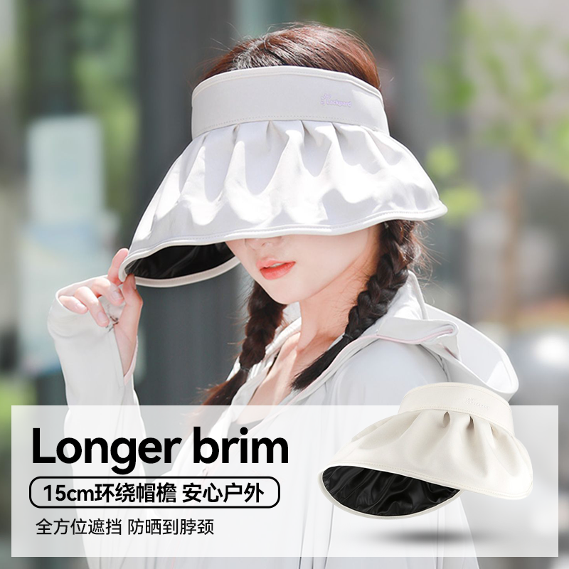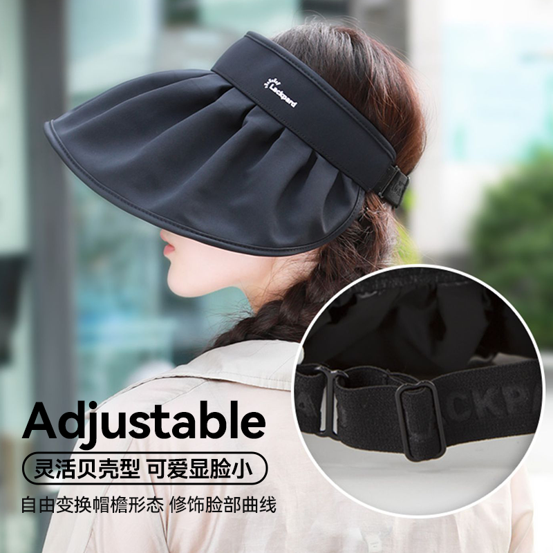 lackpard贝壳防晒帽女防紫外线黑胶遮阳帽空顶发箍全脸防晒太阳帽