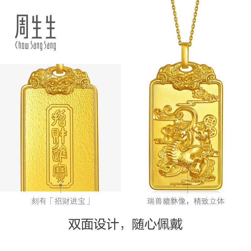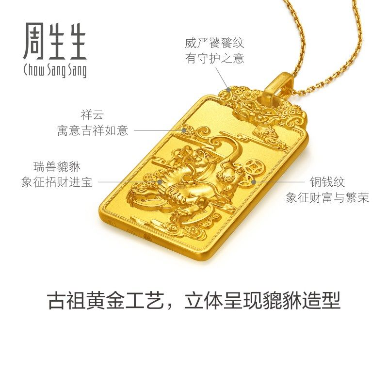圣诞礼物周生生东方古祖招财进宝足金铜钱貔貅古法黄金吊坠96335P