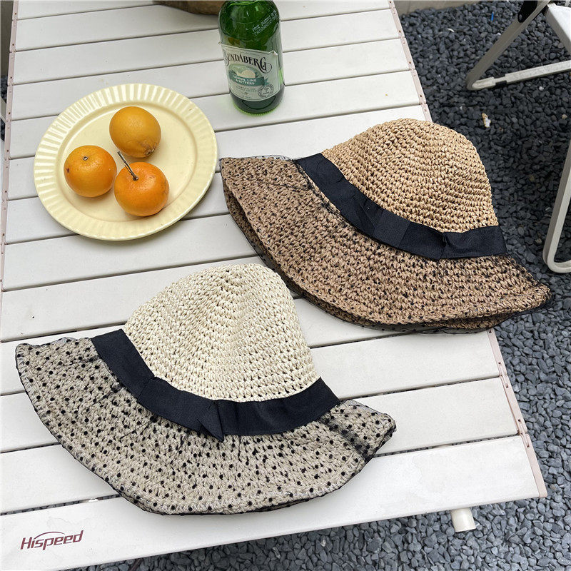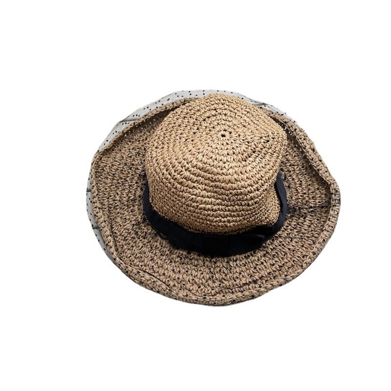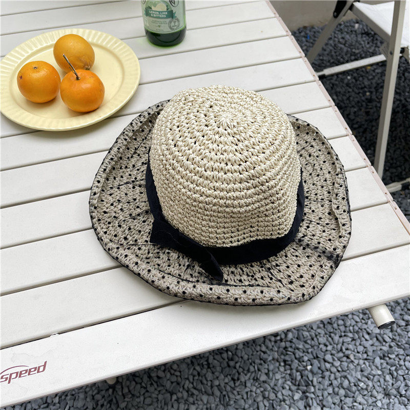 【新品】百搭日系波点网纱遮阳帽女防晒夏薄款沙滩草帽蕾丝户外骑