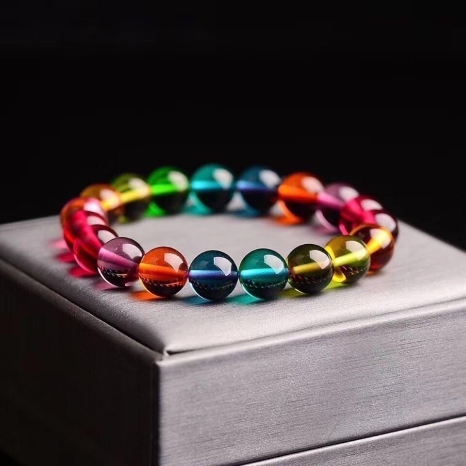 VZZS彩虹碧玺手链旺夫石巴西老矿料招财旺夫转运糖果手串