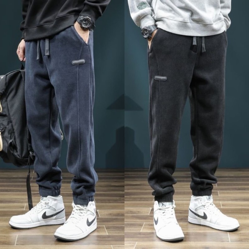 灯芯绒休闲裤男款秋冬季潮牌ins宽松束脚裤加绒加厚保暖运动卫裤