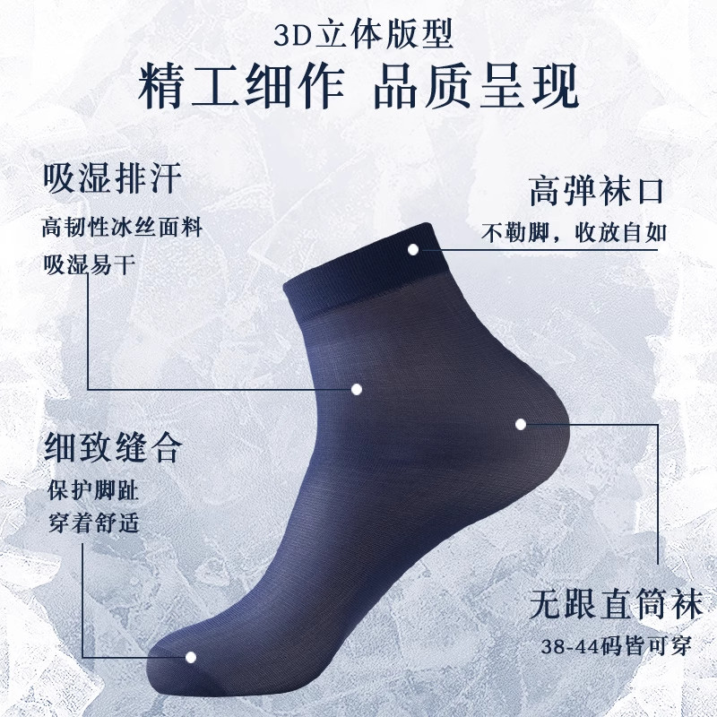 男士丝袜夏季超薄款袜子冰丝透气短袜夏天防臭中筒袜休闲商务男袜
