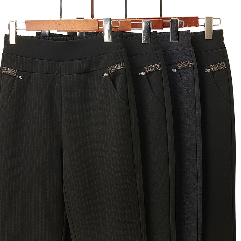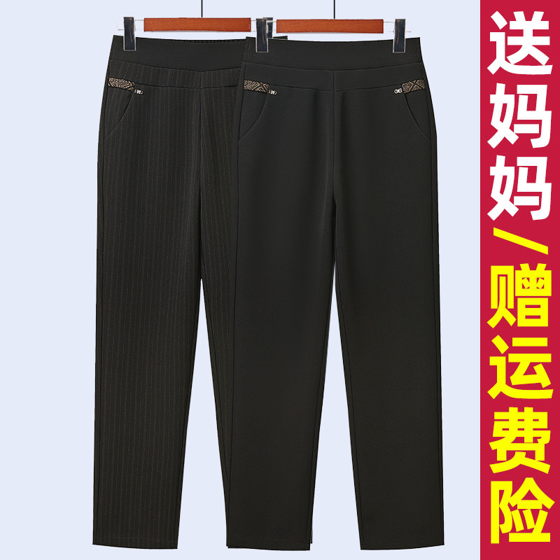 妈妈裤子春秋款松紧高腰弹力中老年女裤宽松大码直筒奶奶加绒长裤