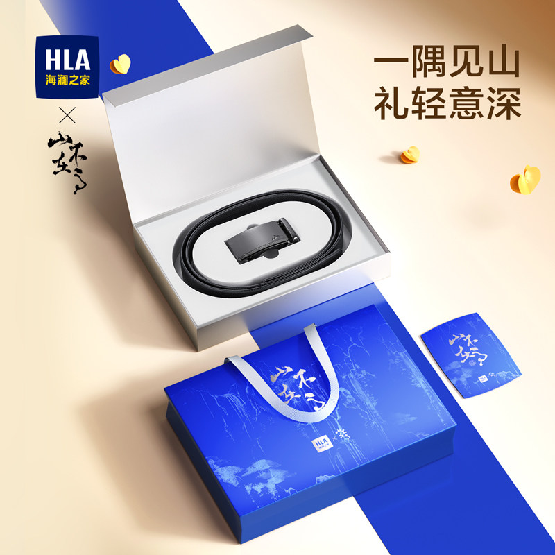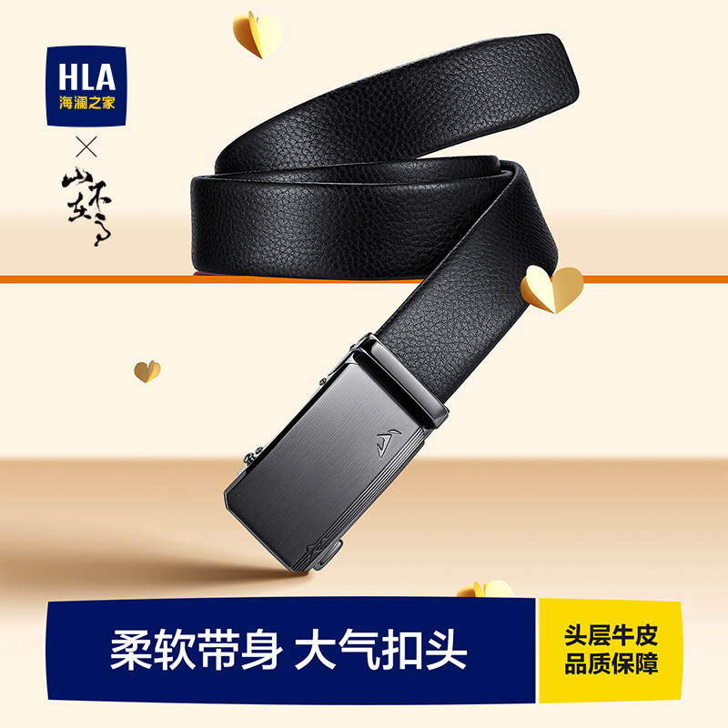 海澜之家头层牛皮腰带男士真皮自动扣裤带礼盒皮带生日礼物送爸爸
