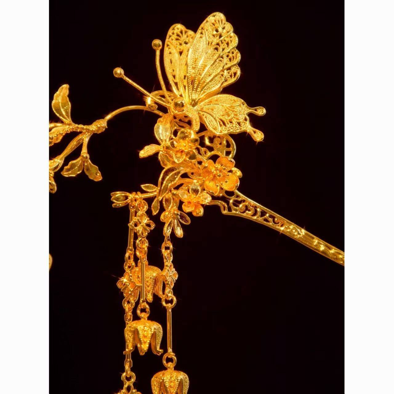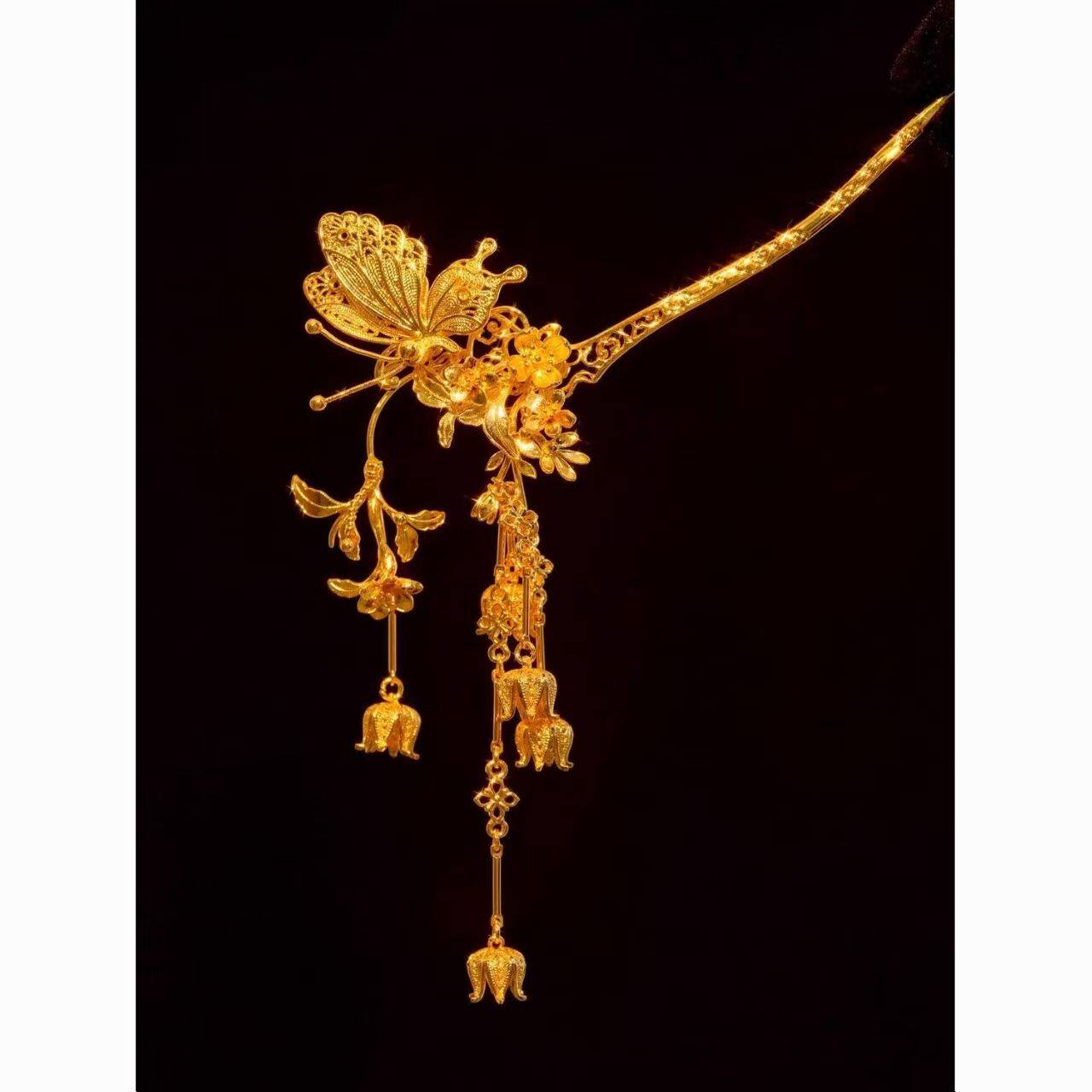 新娘金色蝴蝶发簪头饰龙凤褂旗袍发钗秀禾头饰百搭喜庆中式婚礼女