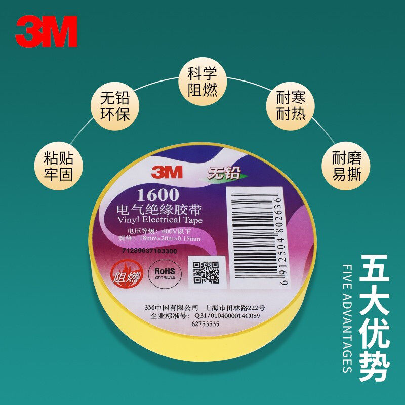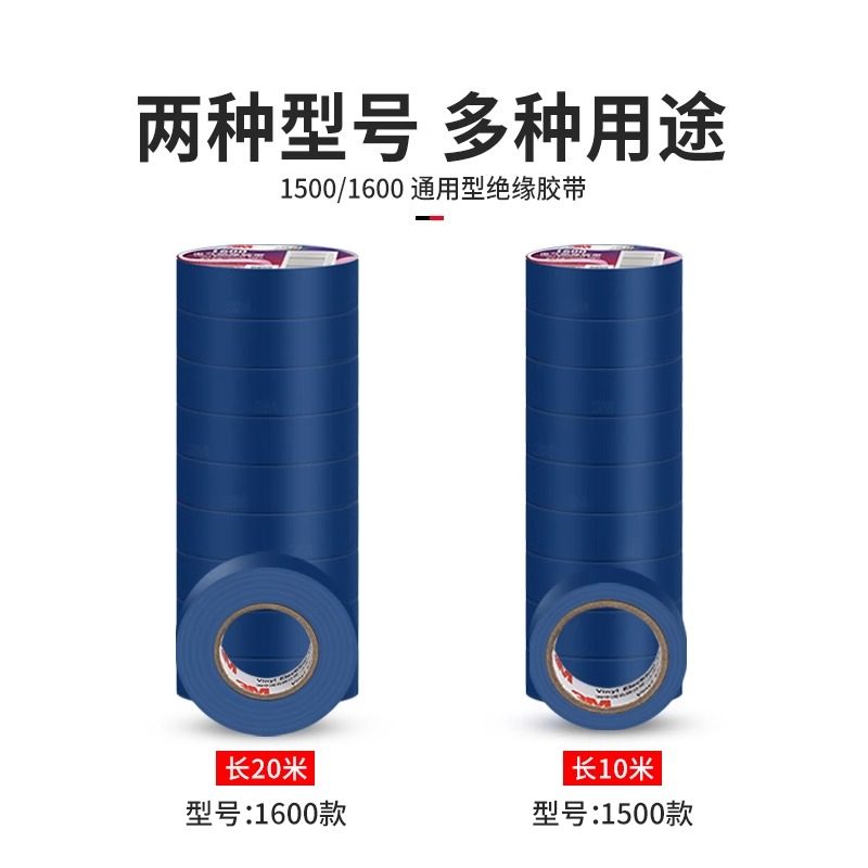 3M1500电工胶布 3M1600电工胶带 阻燃无铅防水电气绝缘胶带18MM宽