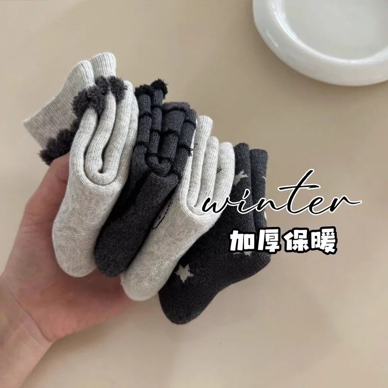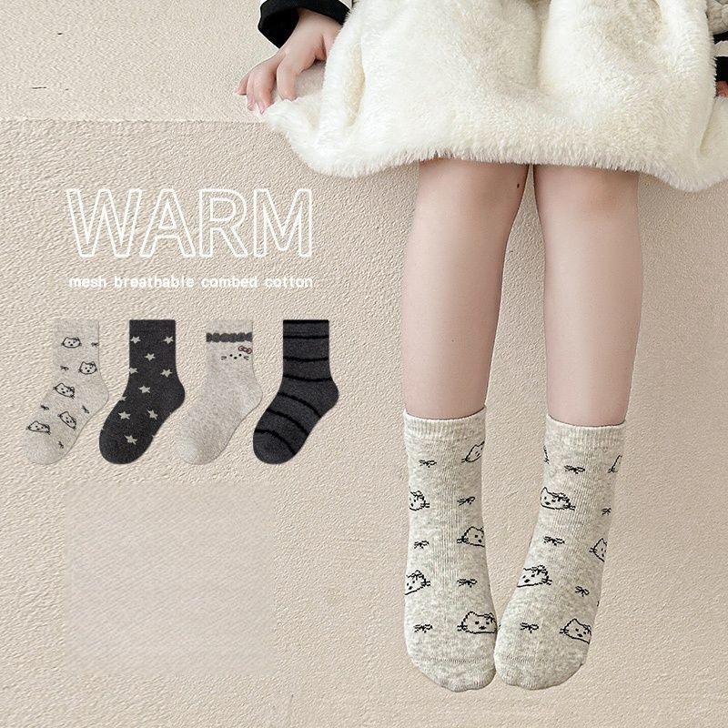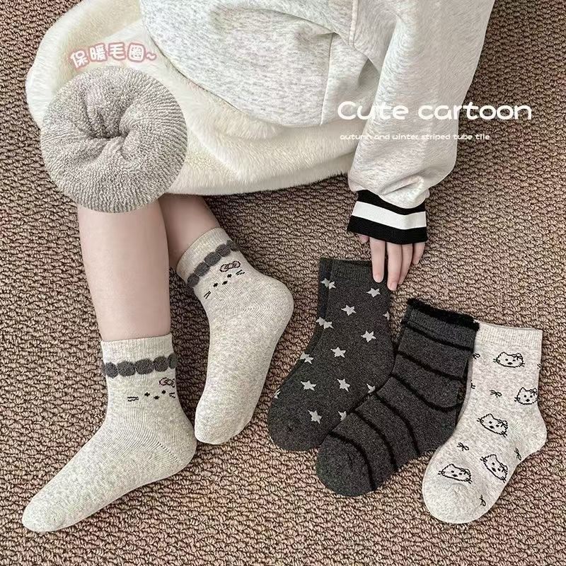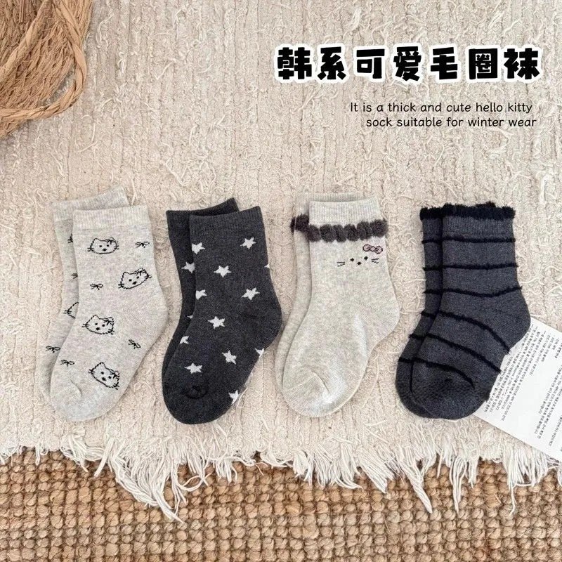 女童袜子秋冬季毛圈加厚加绒中筒袜猫咪可爱韩系女孩保暖学生袜冬