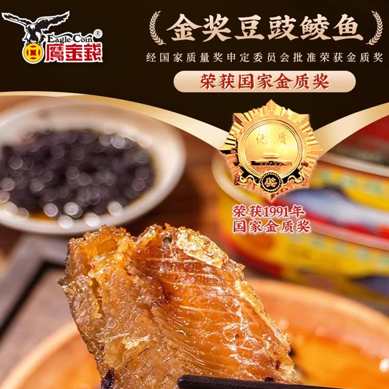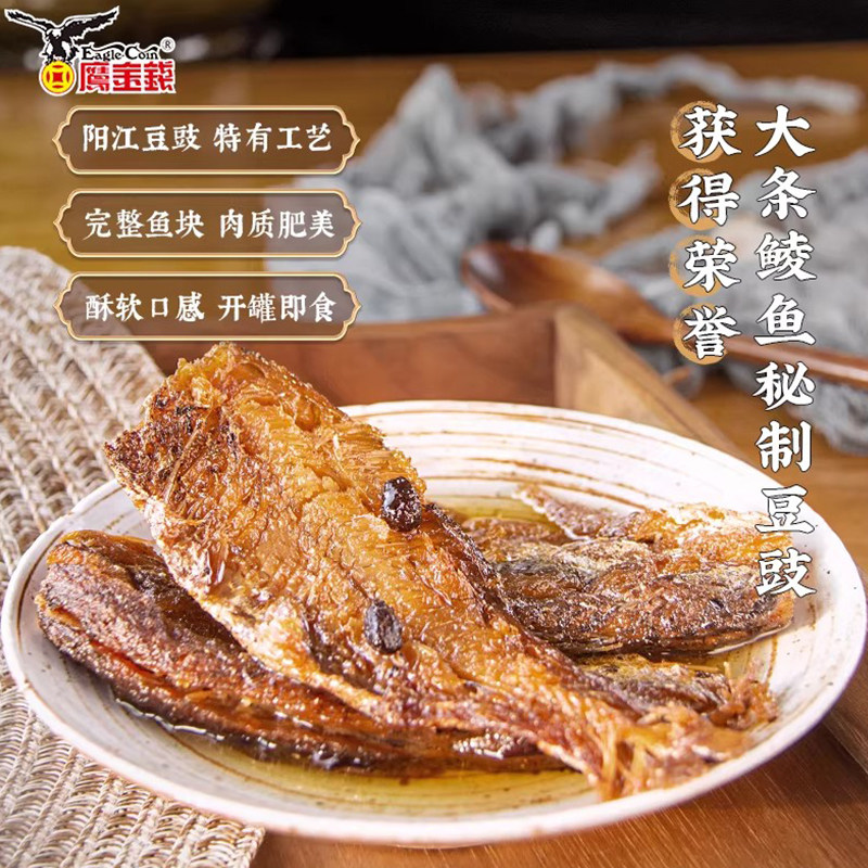 鹰金钱金奖豆豉鲜炸鲮鱼罐头227g广东特产速食配粥酒小菜午餐肉
