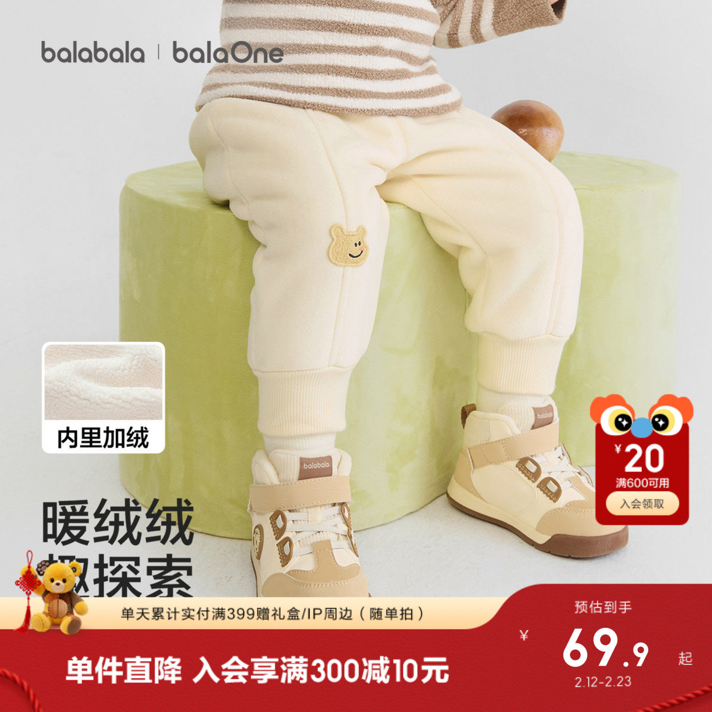 巴拉巴拉童装宝宝裤子男童婴儿加厚长裤2026新款春秋休闲外出运动
