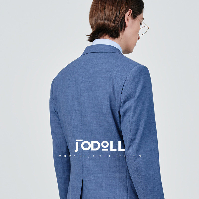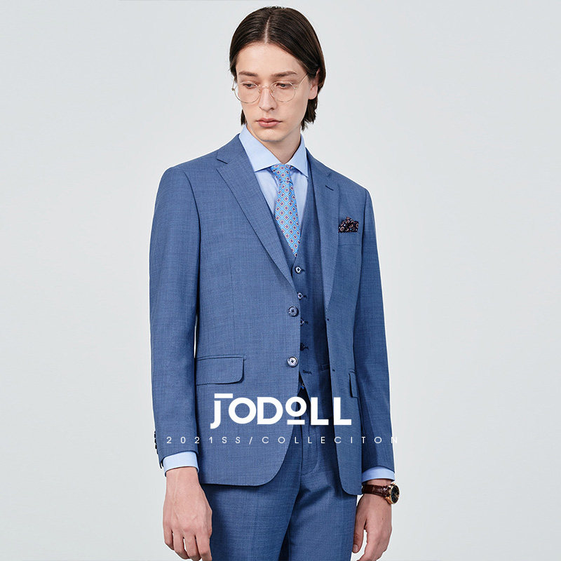 JODOLL乔顿轻熟风男装羊毛桑蚕丝西服商务雾霾蓝小西装男套装上衣