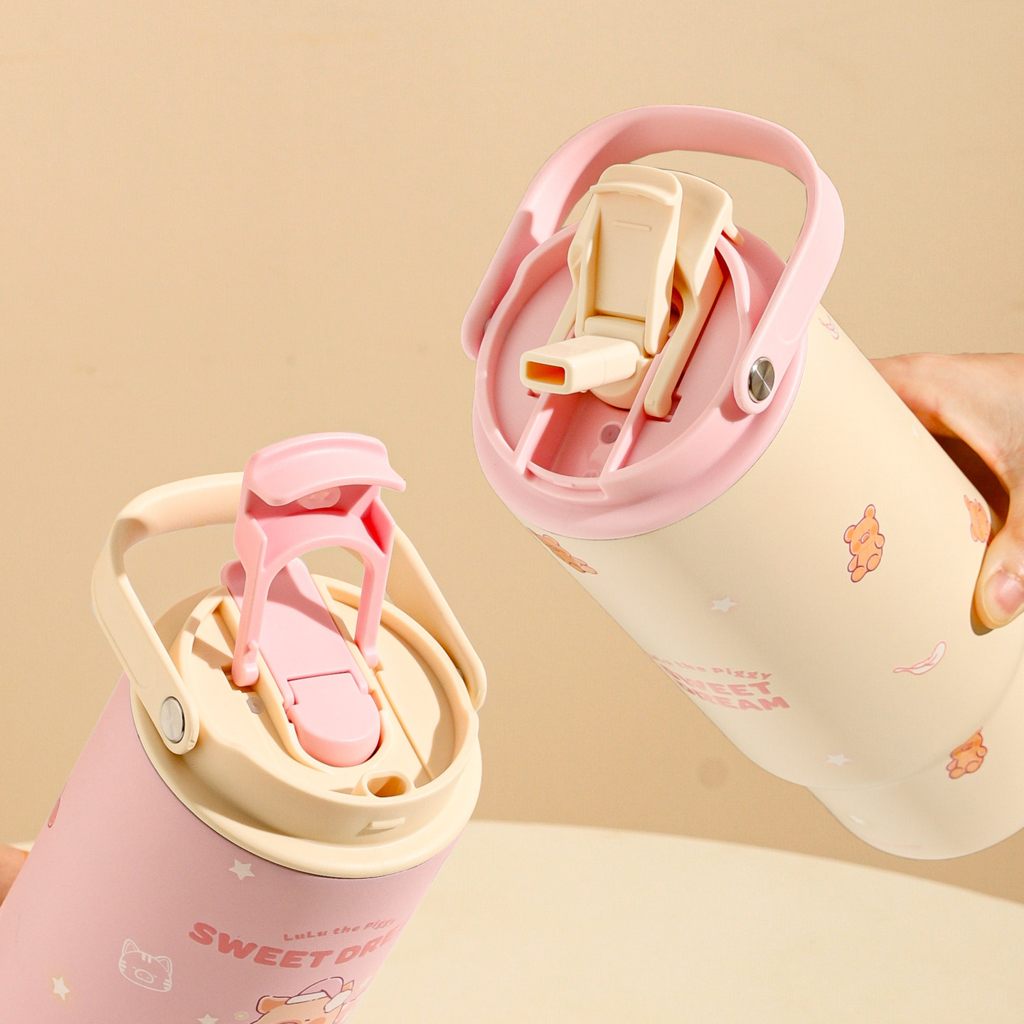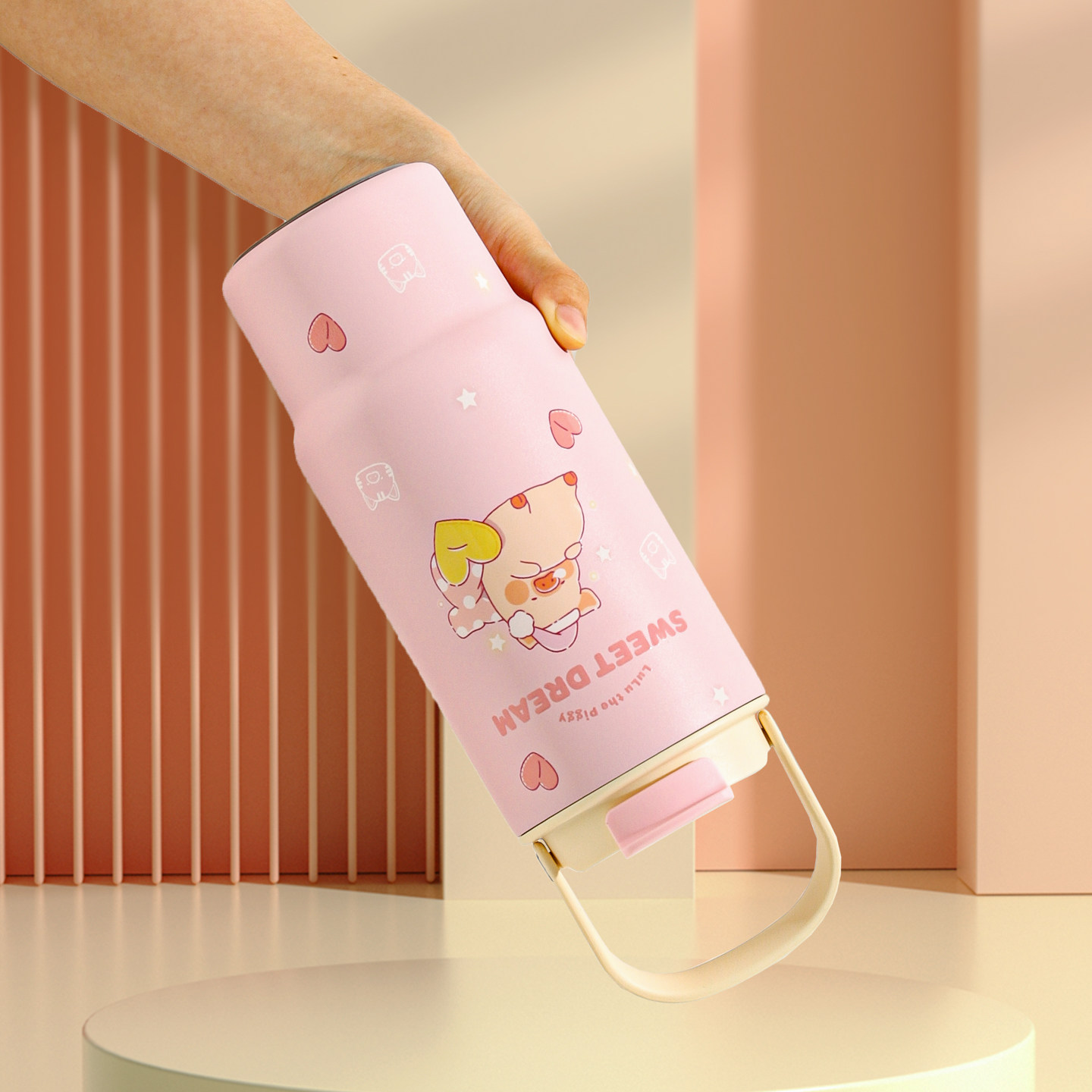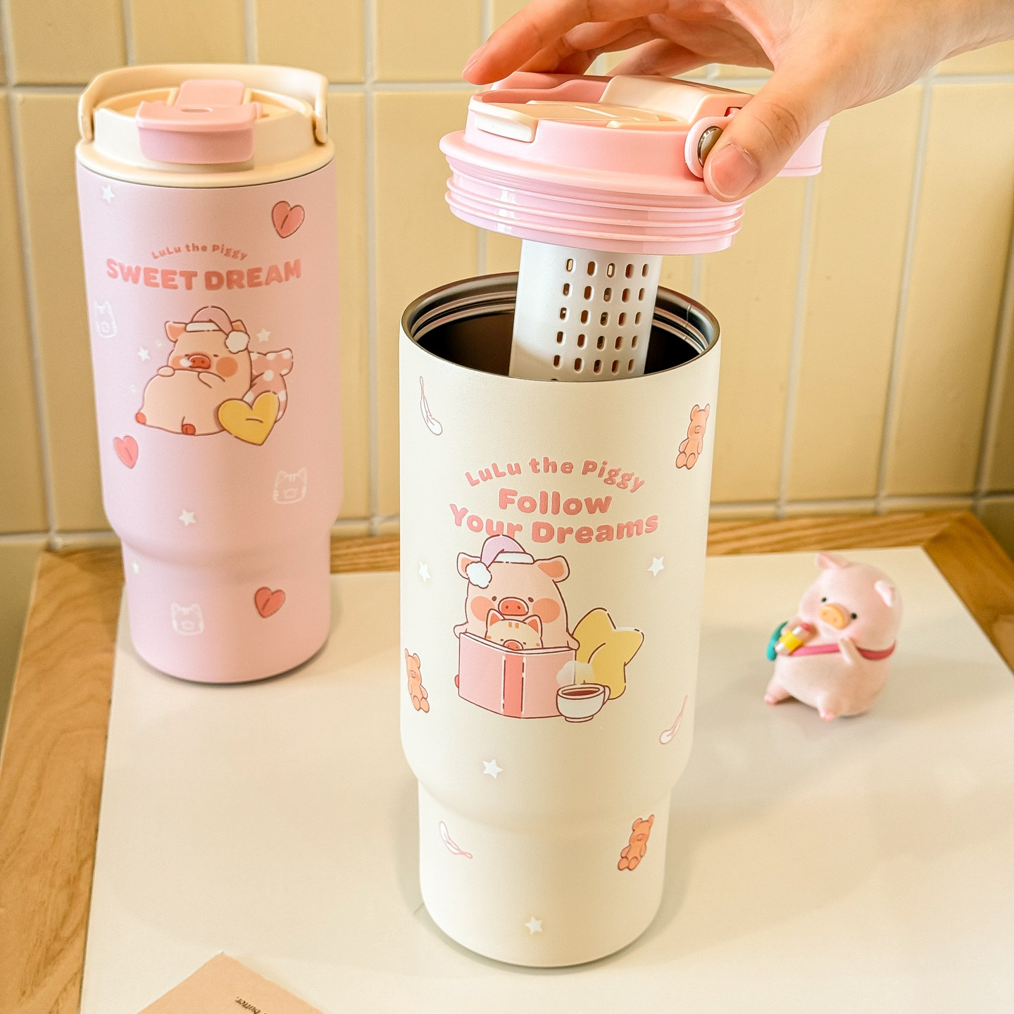 川岛屋&LuLu猪联名 手提保温杯女316不锈钢大容量吸管水杯冰霸杯