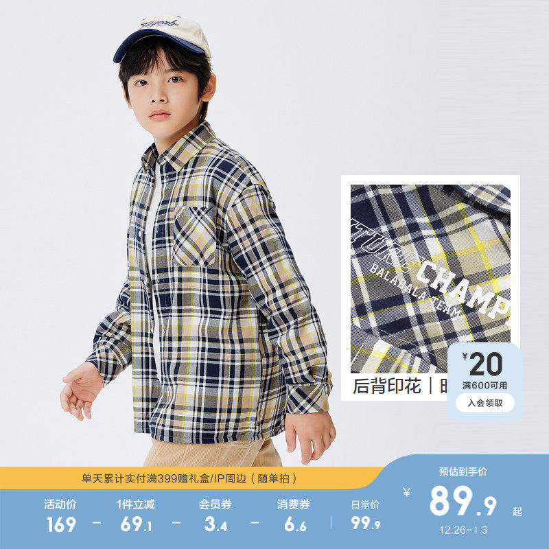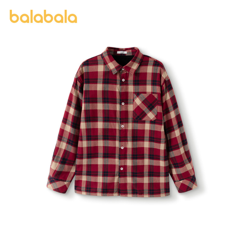 巴拉巴拉童装男童衬衫儿童长袖加绒中大童格子印花衬衣上衣潮休闲