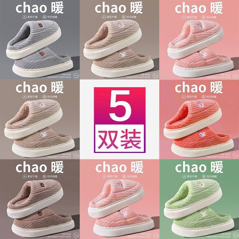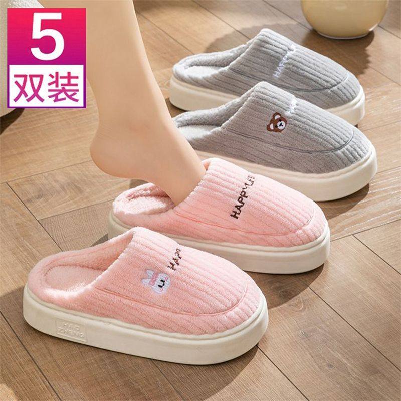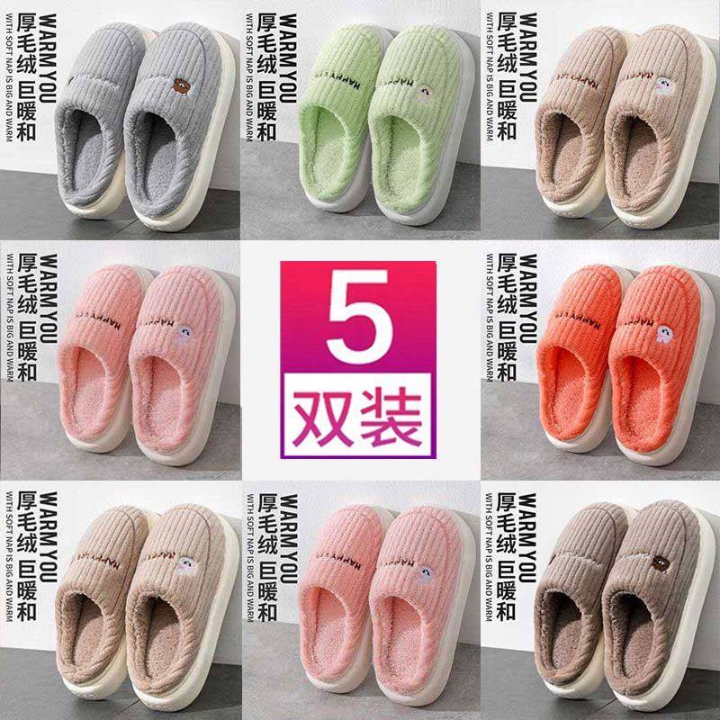 5双装批发棉拖鞋女家用待客室内防滑保暖秋冬季情侣棉拖鞋男加绒