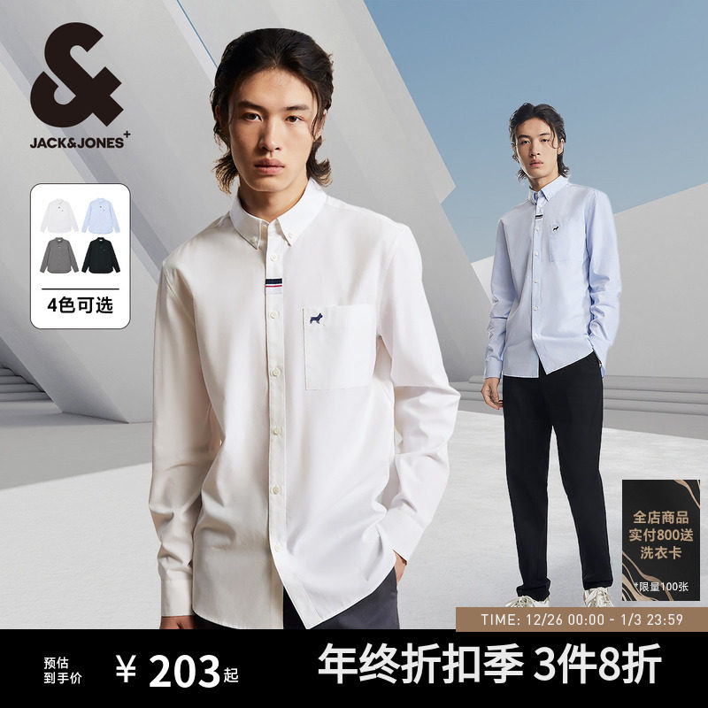 杰克琼斯男装秋季纯棉商务通勤休闲长袖衬衫