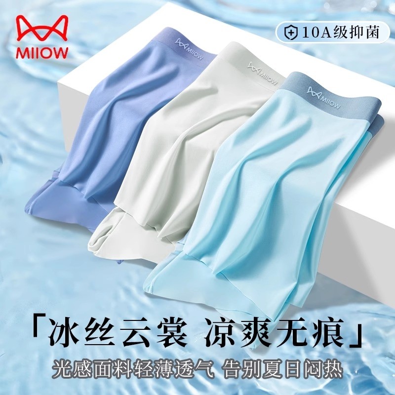 猫人男士内裤男2025新款冰丝夏季薄款男生平角底裤头无痕抗菌透气