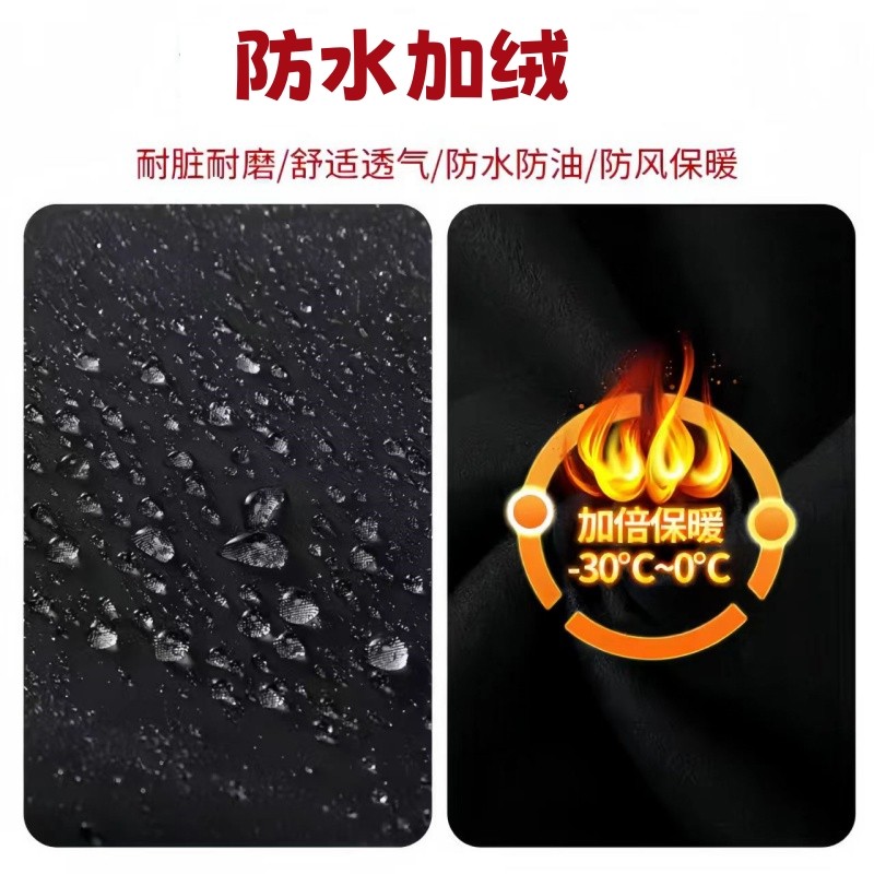 保暖加绒罩衣工作服御寒加厚厨房冬季长袖围裙防水防油污成人舒适