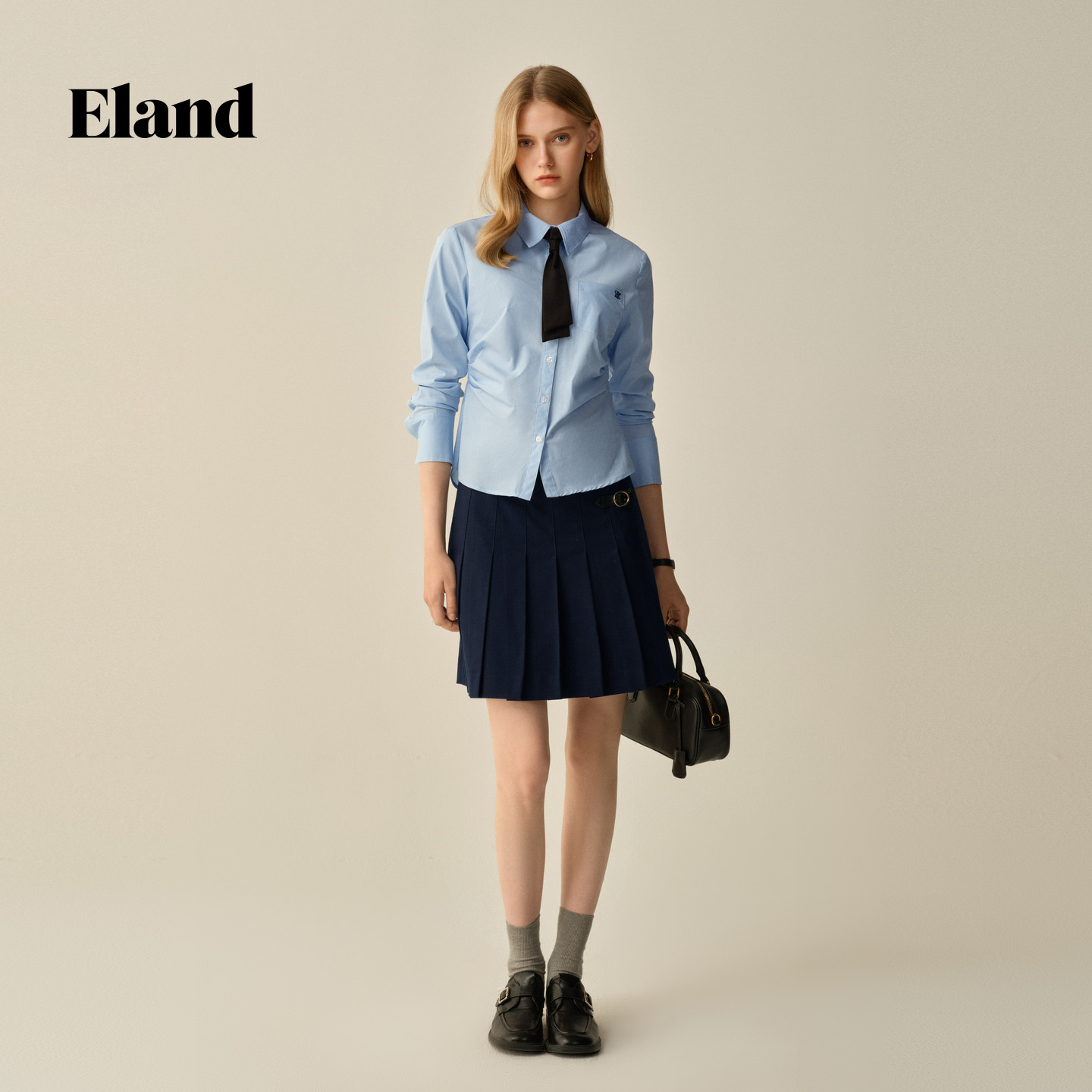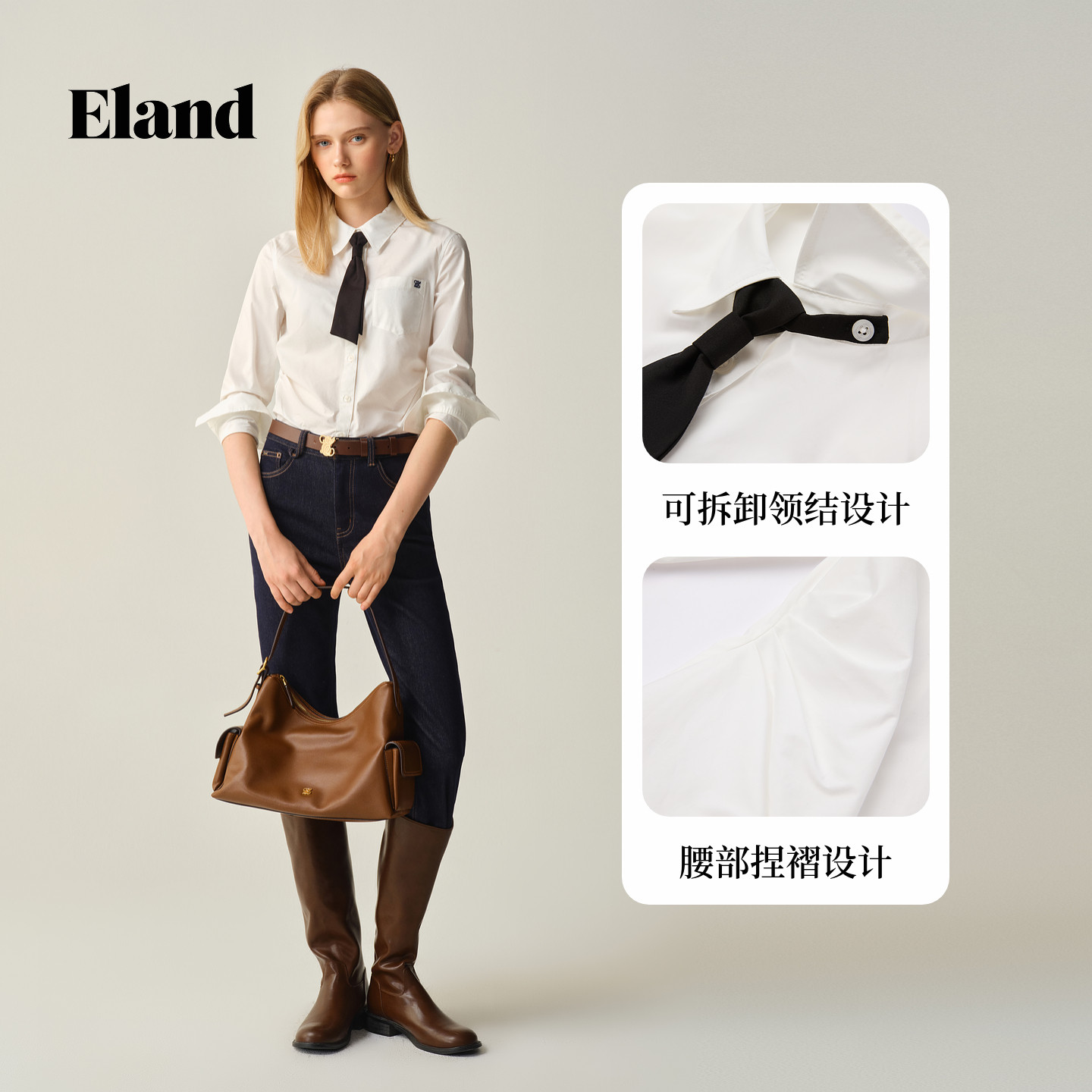【小蛮腰】Eland衣恋衬衫女短款棉质翻领通勤上衣2025冬季新款