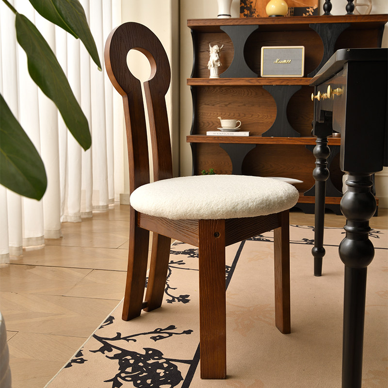 中古实木餐椅钥匙椅北欧简约轻奢家用客厅设计师休闲靠背椅化妆椅
