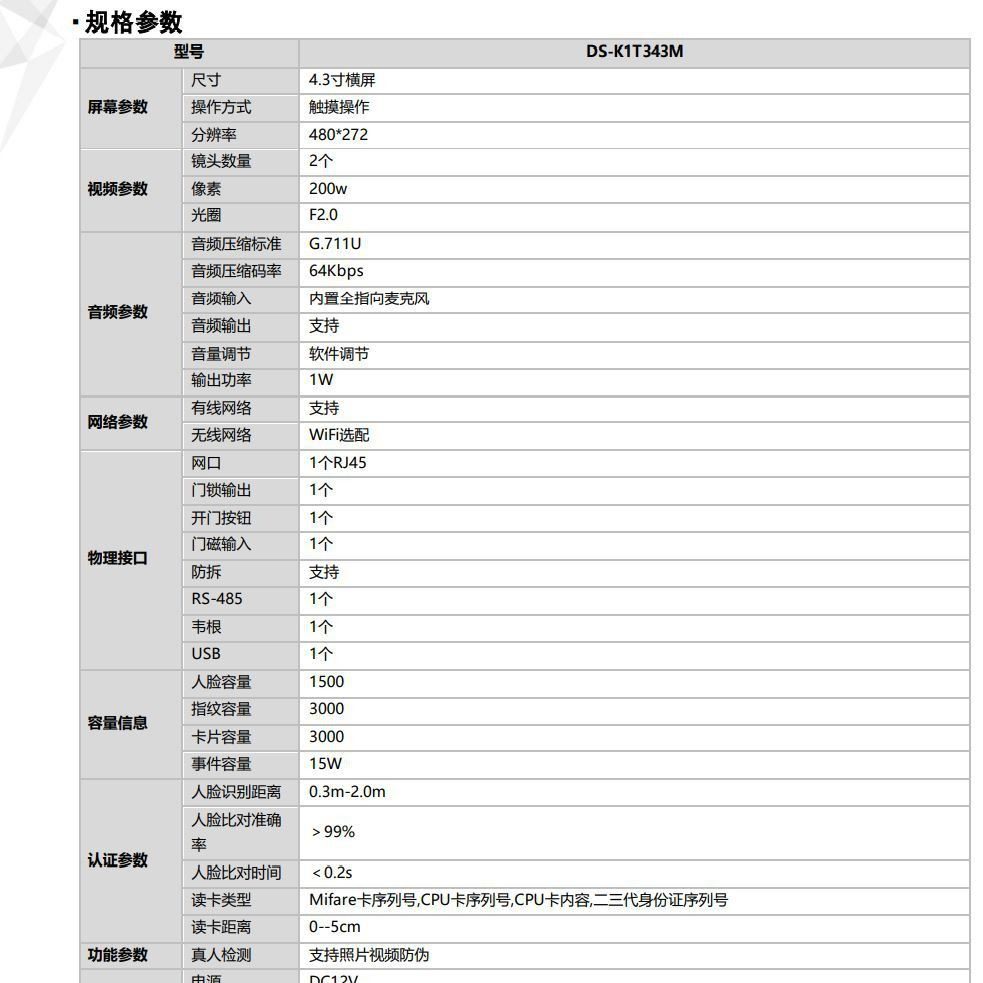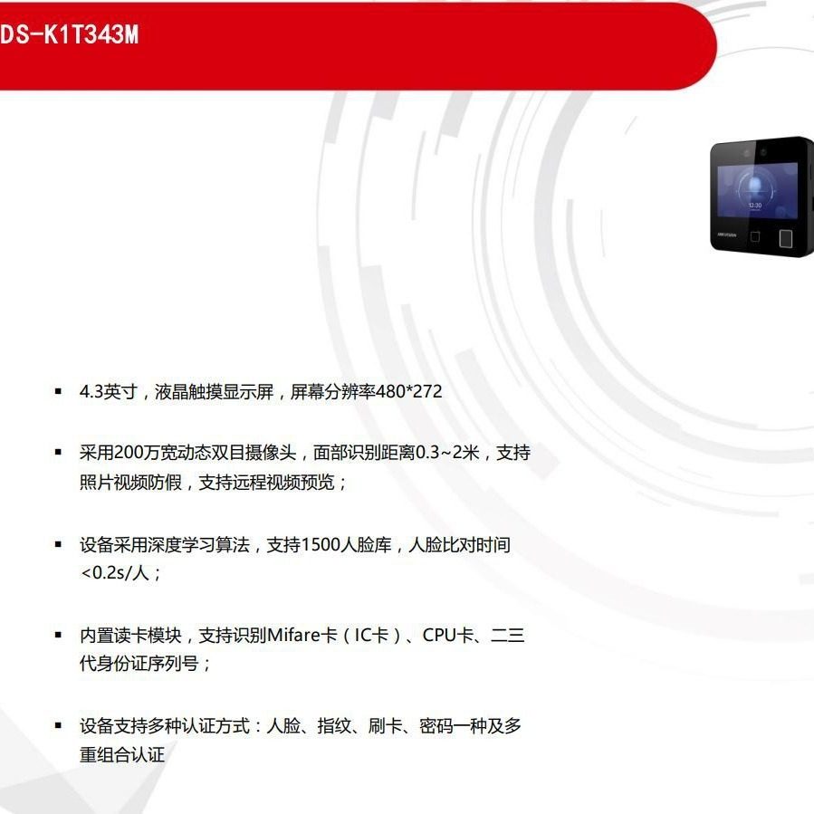 海康威视DS-K1T343MF人脸指纹识别门禁一体机楼宇对讲室内机7寸