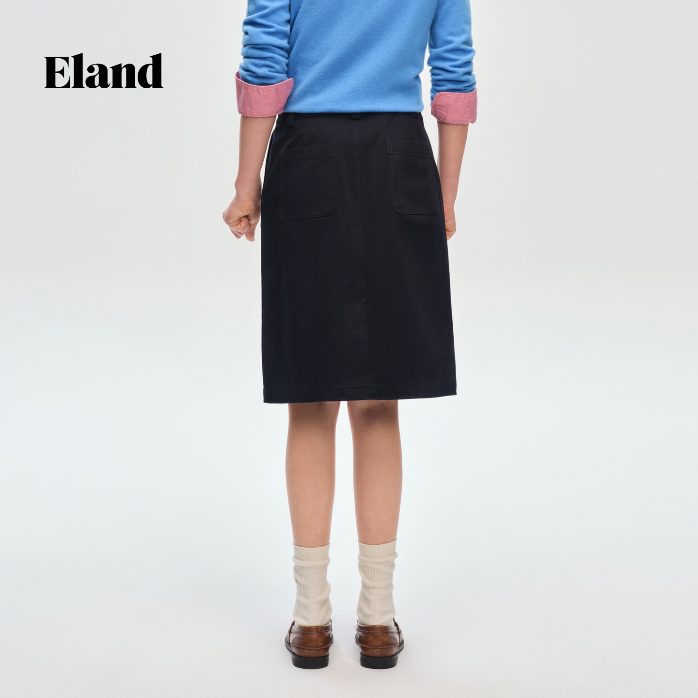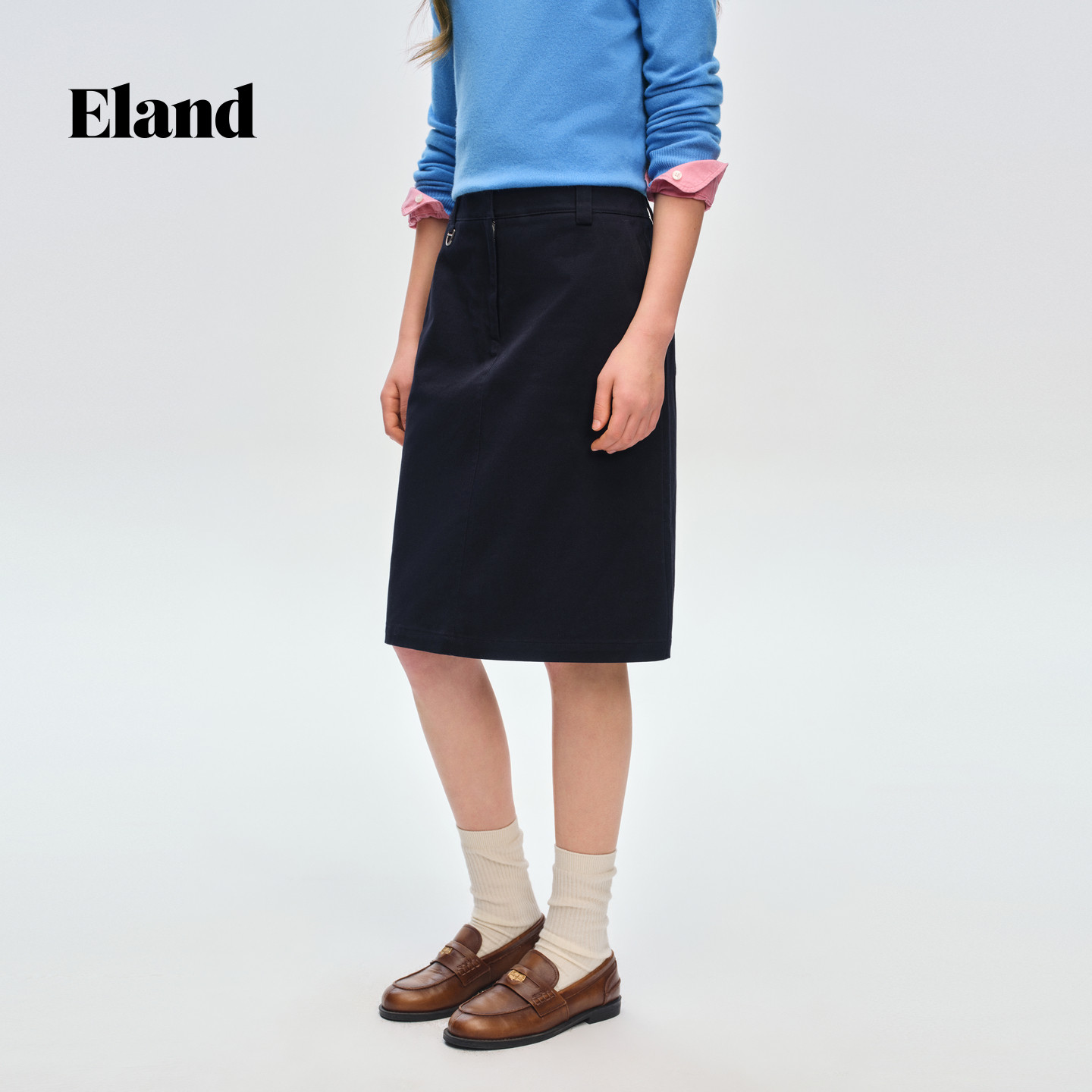 Eland衣恋半身裙女纯色棉质收腰H版型通勤裙子2026春季新款