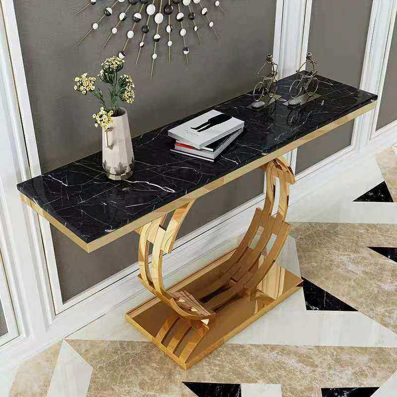 轻奢玄关台简约圆玄关柜现代大理石玄关桌子靠墙不锈钢长条案台