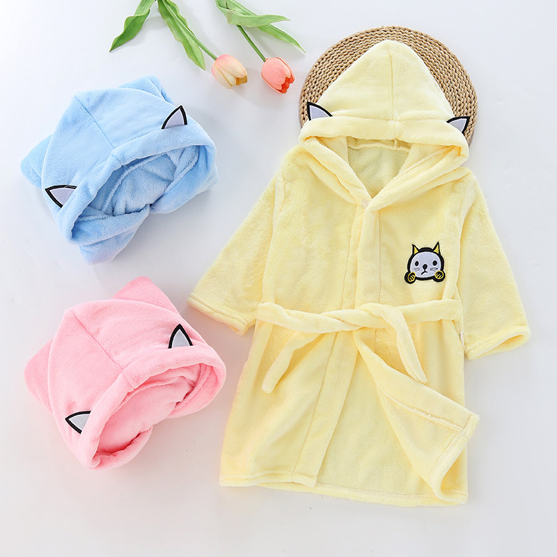 a类儿童吸水浴袍长款加厚中大童家居服珊瑚绒卡通可爱睡袍秋冬季